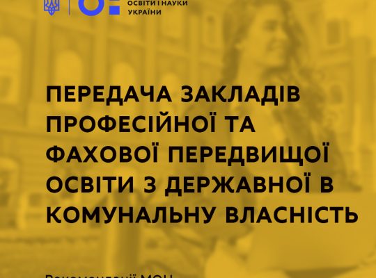 Передача закладів професійної та фахової передвищої освіти з державної в комунальну власність – рекомендації МОН