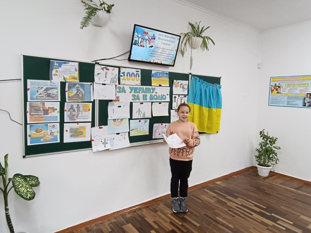 📩Учні писали листи вдячності захисникам, брали участь у конкурсі есе та створювали виставки, присвячені героїзму українців. У рамках проєктів «Хроніка війни», «1000 днів незламності» та інших, організовано зустрічі з військовими, ветеранами, волонтерами. Пам’ятні заходи проходили біля меморіалів полеглих героїв.