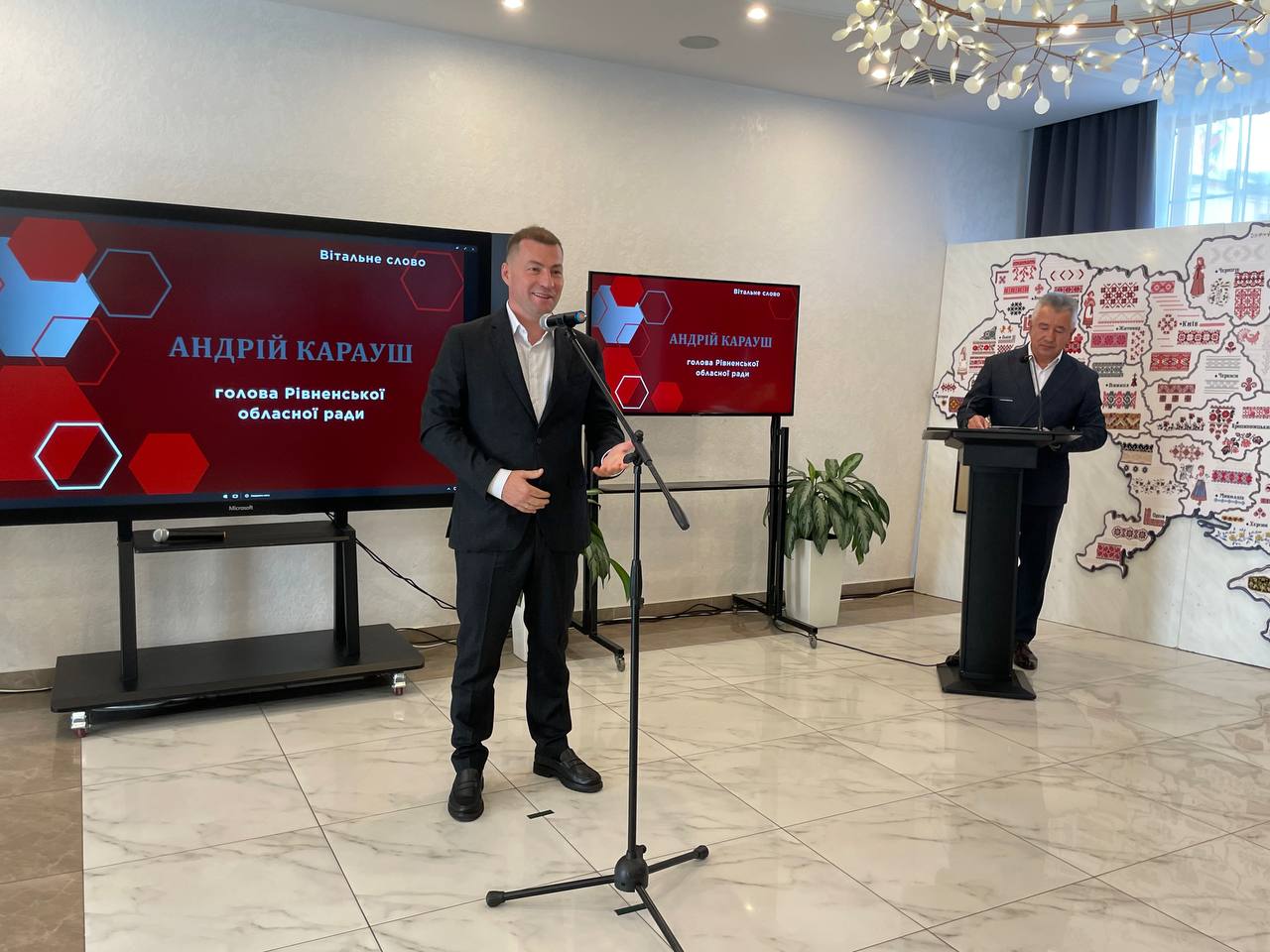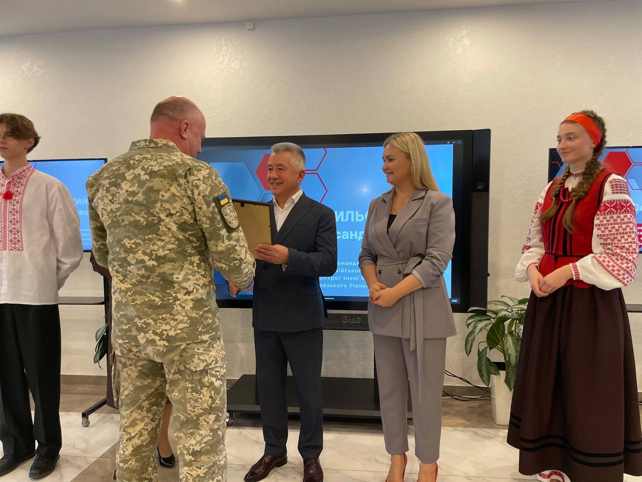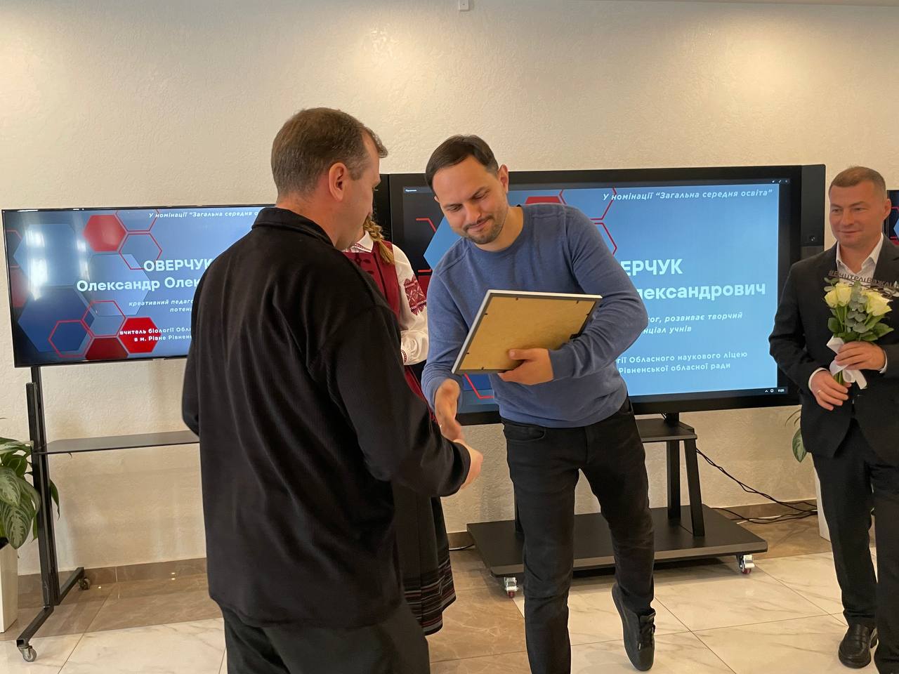 Нагороди освітянам вручили: Олександр Коваль – начальник Рівненської обласної військової адміністрації, Андрій Карауш – голова Рівненської обласної ради, Сергій Подолін – перший заступник голови Рівненської облдержадміністрації.