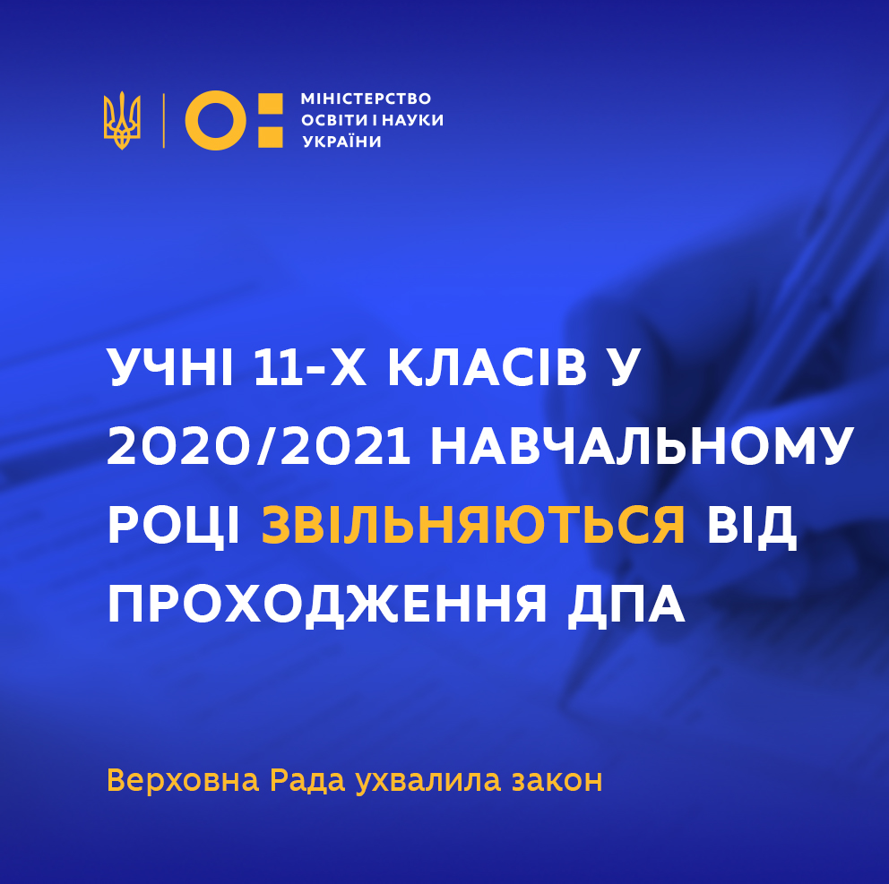 13 квітня 2021 року відбулося позачерговое засідання Верховної Ради України, де було підтримано законопроєкт, який скасовує обов’язковість проходження державної підсумкової атестації (ДПА) для здобувачів повної загальної середньої освіти (11-ти класників) у 2021 році.
