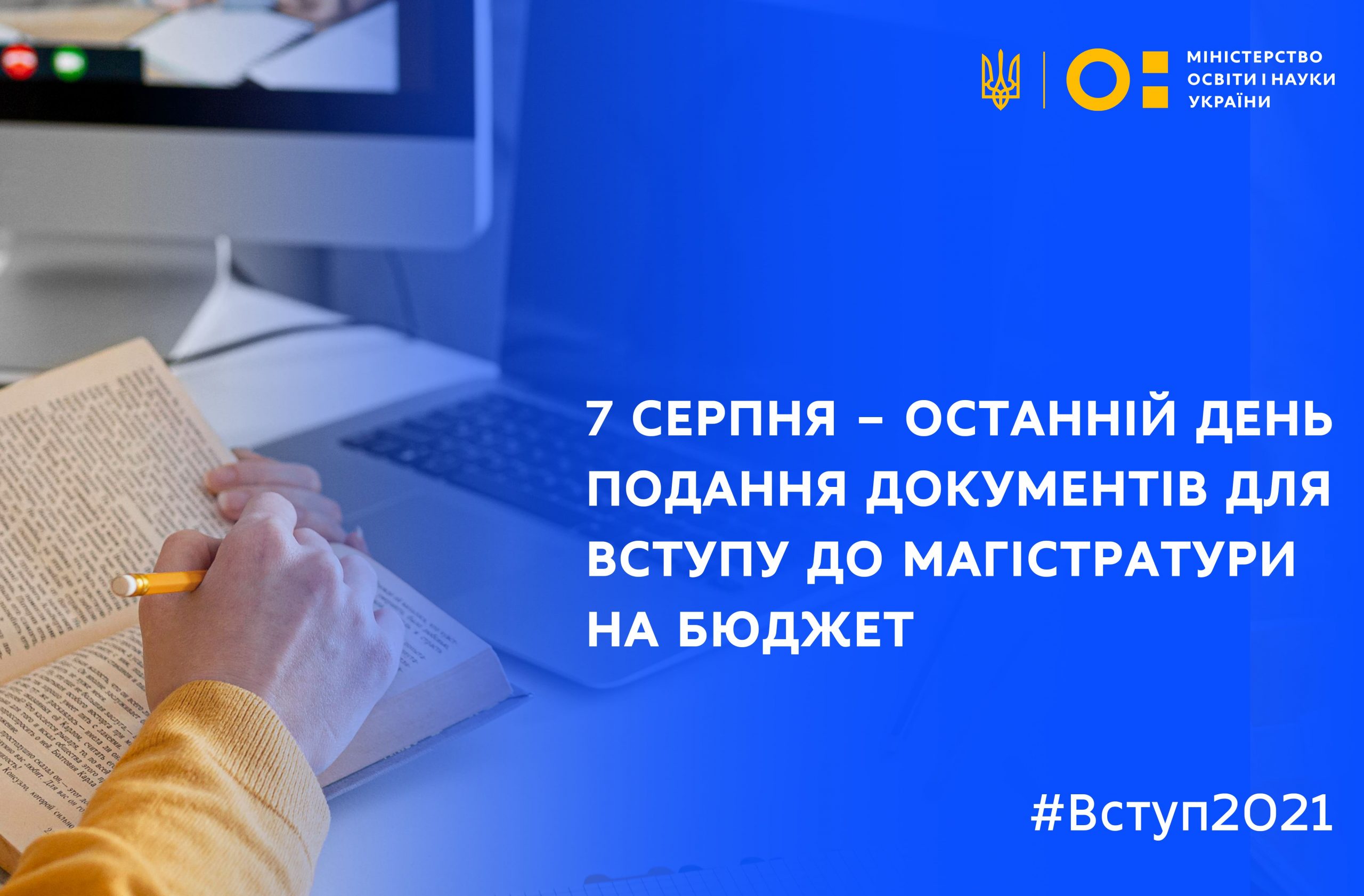 Завтра, 7 серпня, у межах вступної кампанії 2021 завершується подання оригіналів документів до магістратури закладів вищої освіти для вступників на бюджет.