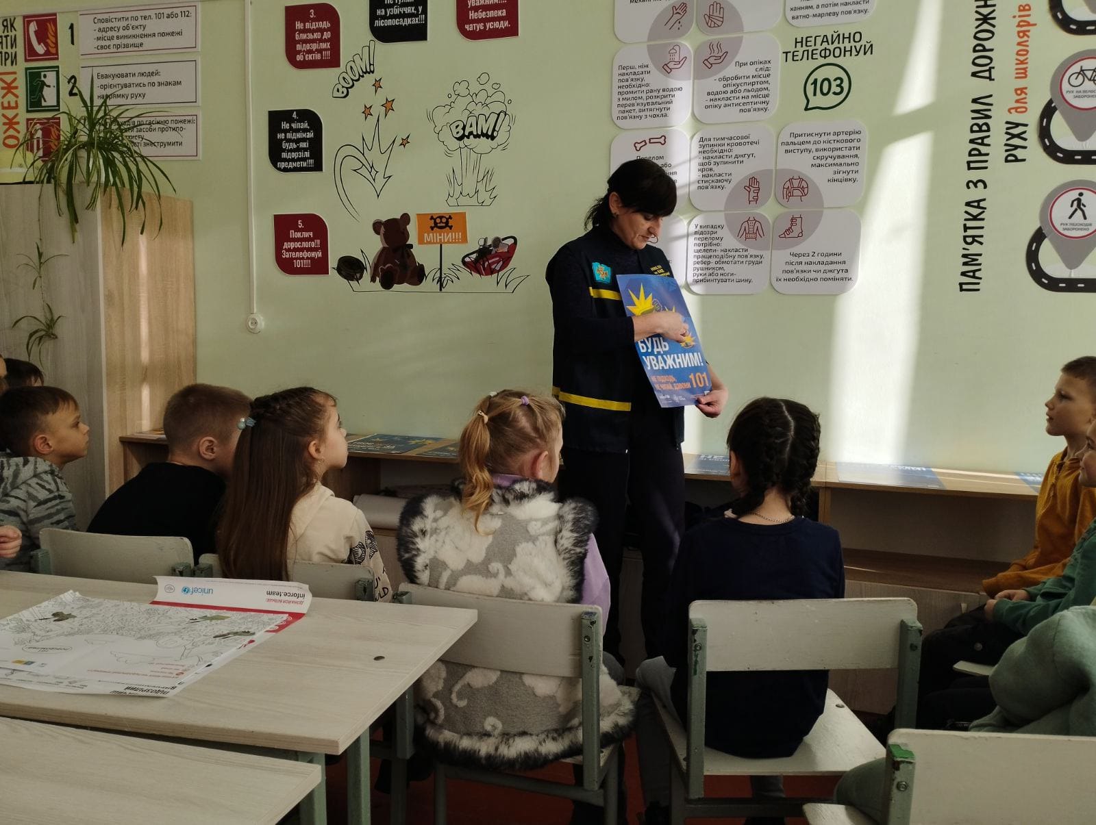 🔹Особливу увагу приділено правилам поводження з вибухонебезпечними предметами. Дітям пояснюють, як розпізнати підозрілі об’єкти, чому їх не можна чіпати та що робити у разі небезпечної знахідки – не наближатися, не торкатися і негайно повідомити дорослих або рятувальників.