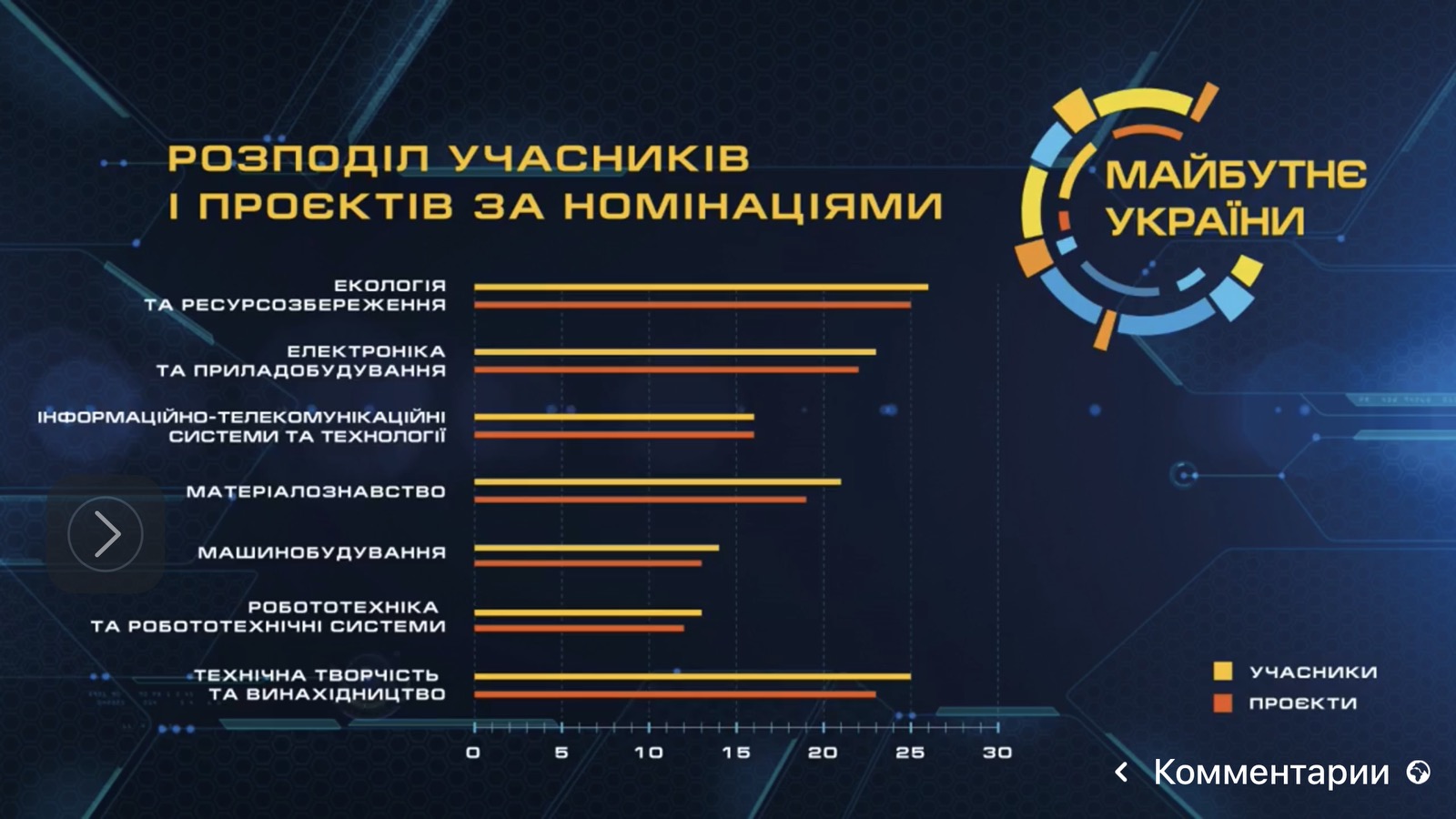 у номінації «Машинобудування» з роботою «Модель для визначення впливу силових полів на опір руху літальних апаратів» ІІІ місце – у Вікторії Москалик (наукові керівники Сергій Кочубей та Ігор Омельчук).