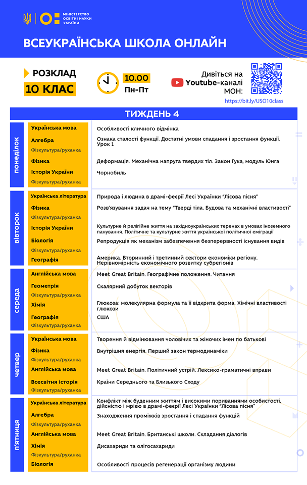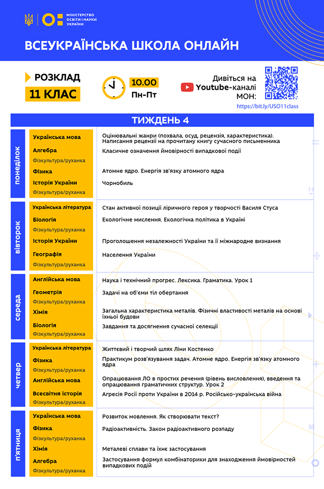 О 10.00 стартує 4 тиждень Всеукраїнської школи онлайн. Усі уроки на сьогодні вже заплановано на YouTube МОН: