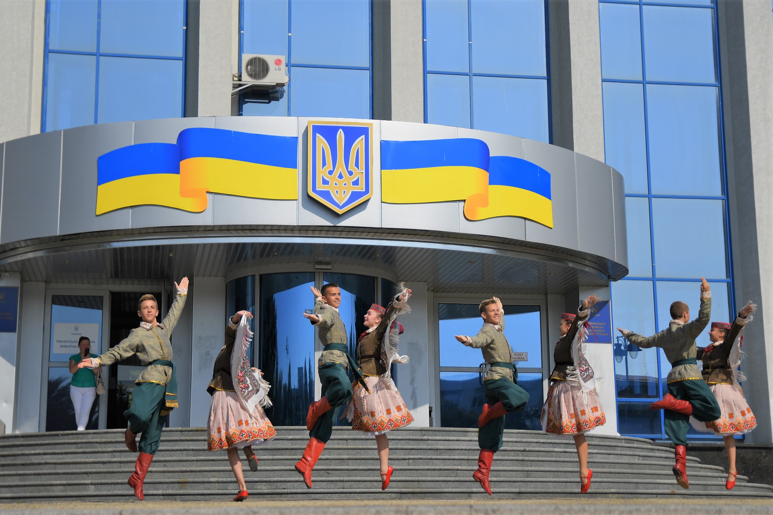 Учасники художнього колективу ансамблю народного танцю «Дружба» розпочали свій виступ із «Танцювальної вервечки» на Майдані Просвіти.