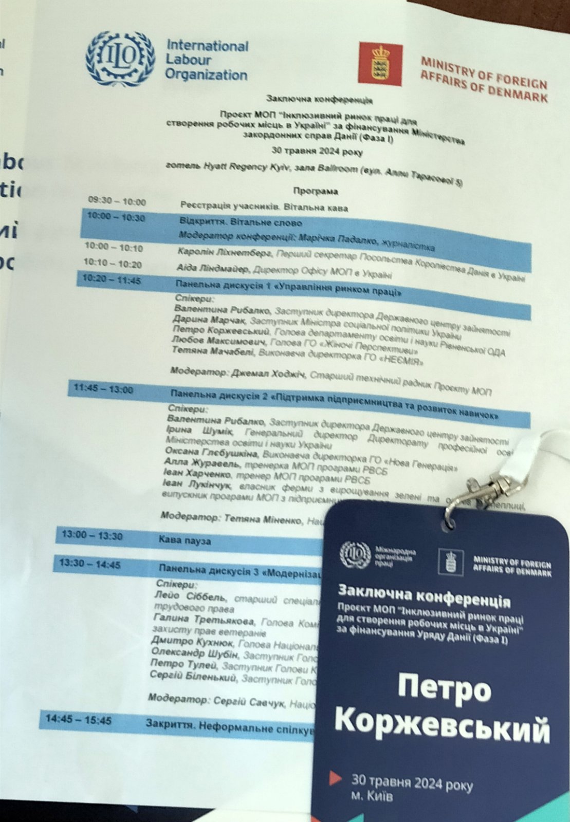 30 травня 2024 року в м Київ відбулася фінальна конференція Проєкту Міжнародної Організації Праці. У роботі конференції взяв участь директор департаменту освіти і науки Петро КОРЖЕВСЬКИЙ представивши ефективну результативність впровадження місцевого партнерства зайнятості в Рівненській області – через реформування професійної освіти та створення сучасної системи перепідготовки, та підвищення кваліфікації шукачів роботи, та роботодавців, які в подальшому відповідають актуальним викликам ринку праці.
