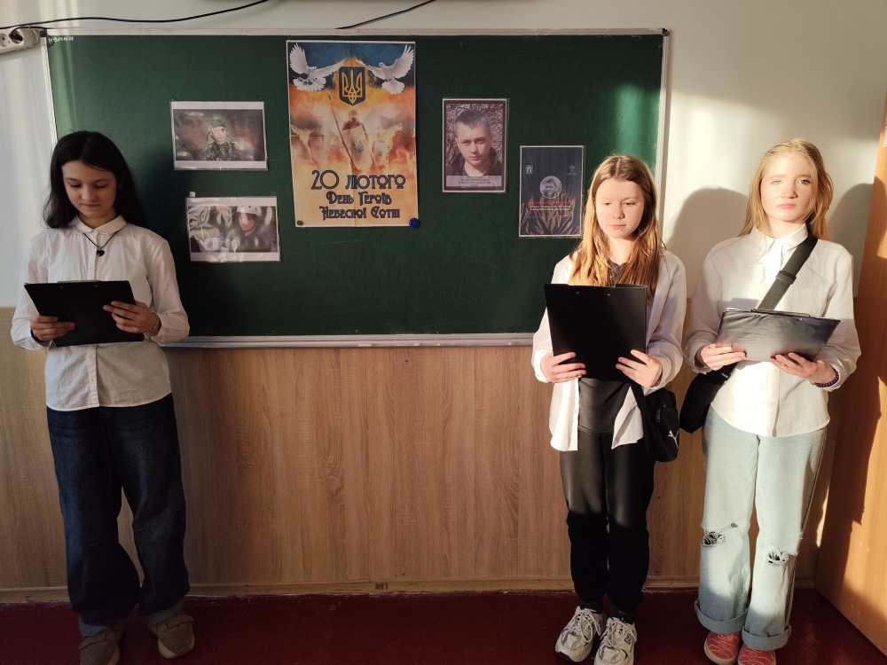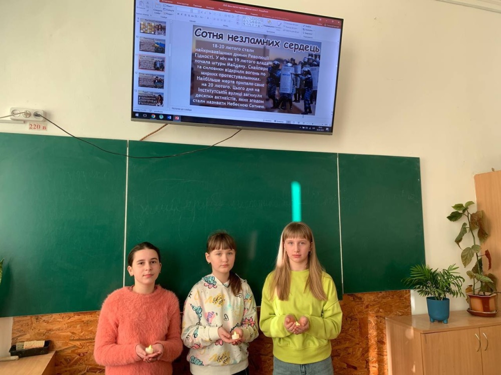 Проводяться виховні бесіди, уроки-диспути, години спілкування та перегляд документальних фільмів, присвячених подіям Революції Гідності. Учні беруть участь у майстер-класах, присвячених пам’яті загиблих, та створили виставки власних творчих робіт.