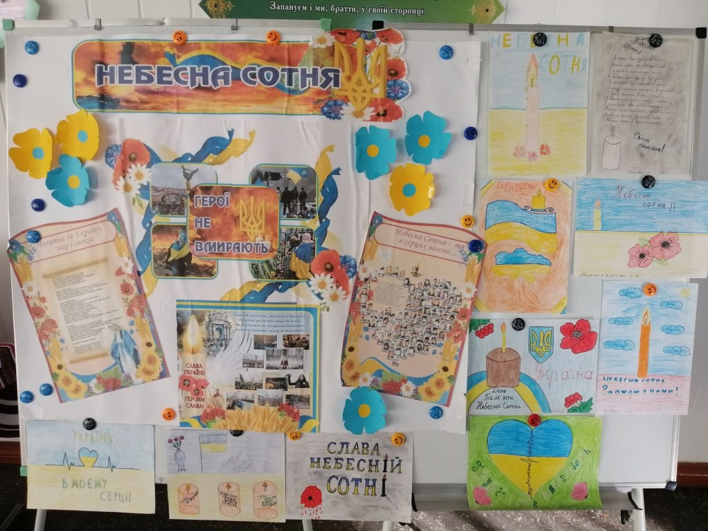 Також оформлено інформаційні стенди, проведено лінійки-реквієми, екскурсії та віртуальні подорожі до музеїв, присвячених Героям Небесної Сотні. У шкільних бібліотеках організовано тематичні виставки літератури, що висвітлює подвиг українських героїв.