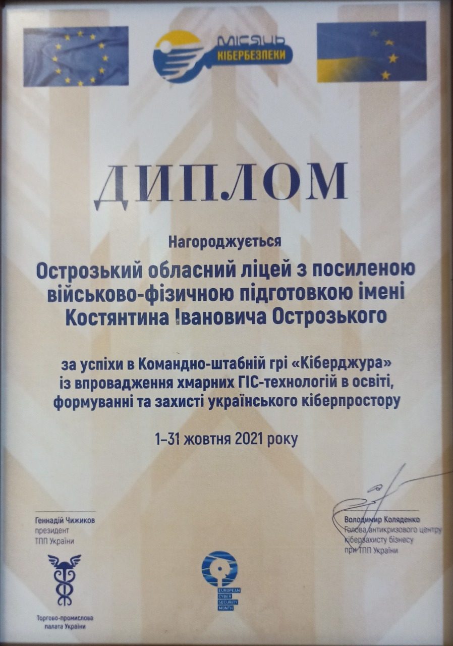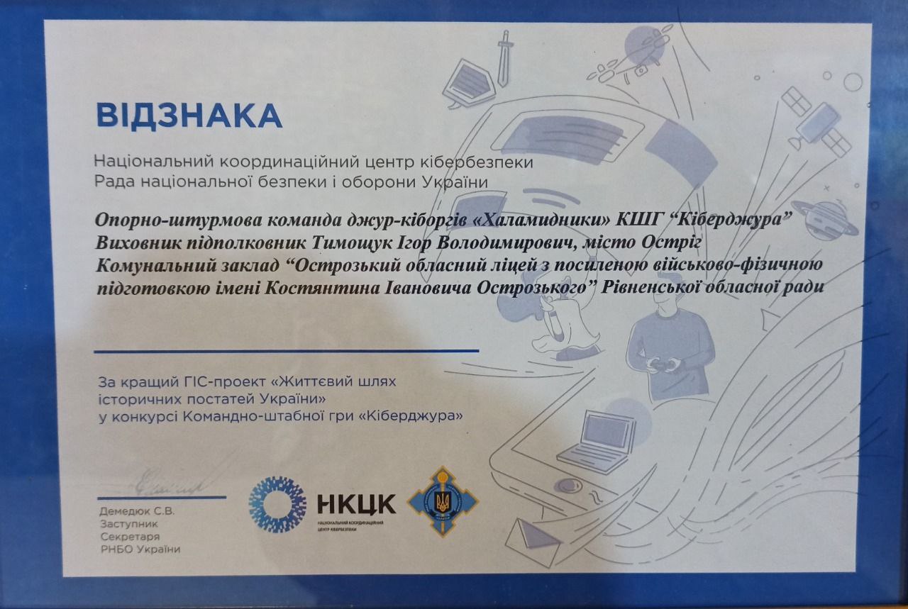 Кібербезпека важлива, особливо в умовах війни. Саме тому Обласний ліцей з посиленою військово-фізичною підготовкою в м. Острог імені Костянтина Івановича Острозького є активним учасником національно-патріотичної гри «Кіберджура».