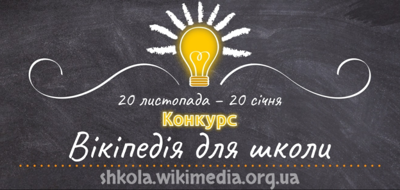З 20 жовтня по 20 грудня 2020 року вдруге пройде конкурс статей у найбільшій онлайн-енциклопедії українською мовою «Вікіпедія для школи». Мета проєкту — наповнити українську Вікіпедію якісними статтями, які мають великий запит серед учнів та пов’язані зі шкільною програмою. Цього року конкурс проходитиме в одинадцяти темах — «Англійська мова», «Всесвітня історія», «Географія», «Зарубіжна література», «Інформатика», «Історія України», «Математика», «Мистецтво», «Українська література», «Українська мова», «Фізика».