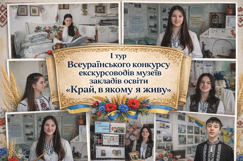 Підбито підсумки I туру Всеукраїнського конкурсу екскурсоводів музеїв закладів освіти «Край, в якому я живу». Конкурс об’єднав тих, хто вміє не просто розповідати про експонати, а оживляти історію та формувати любов до рідного краю.