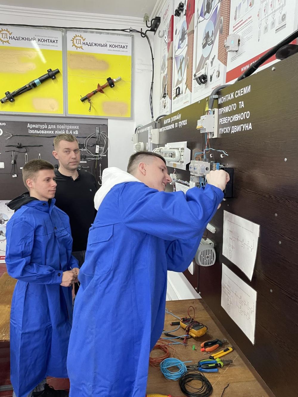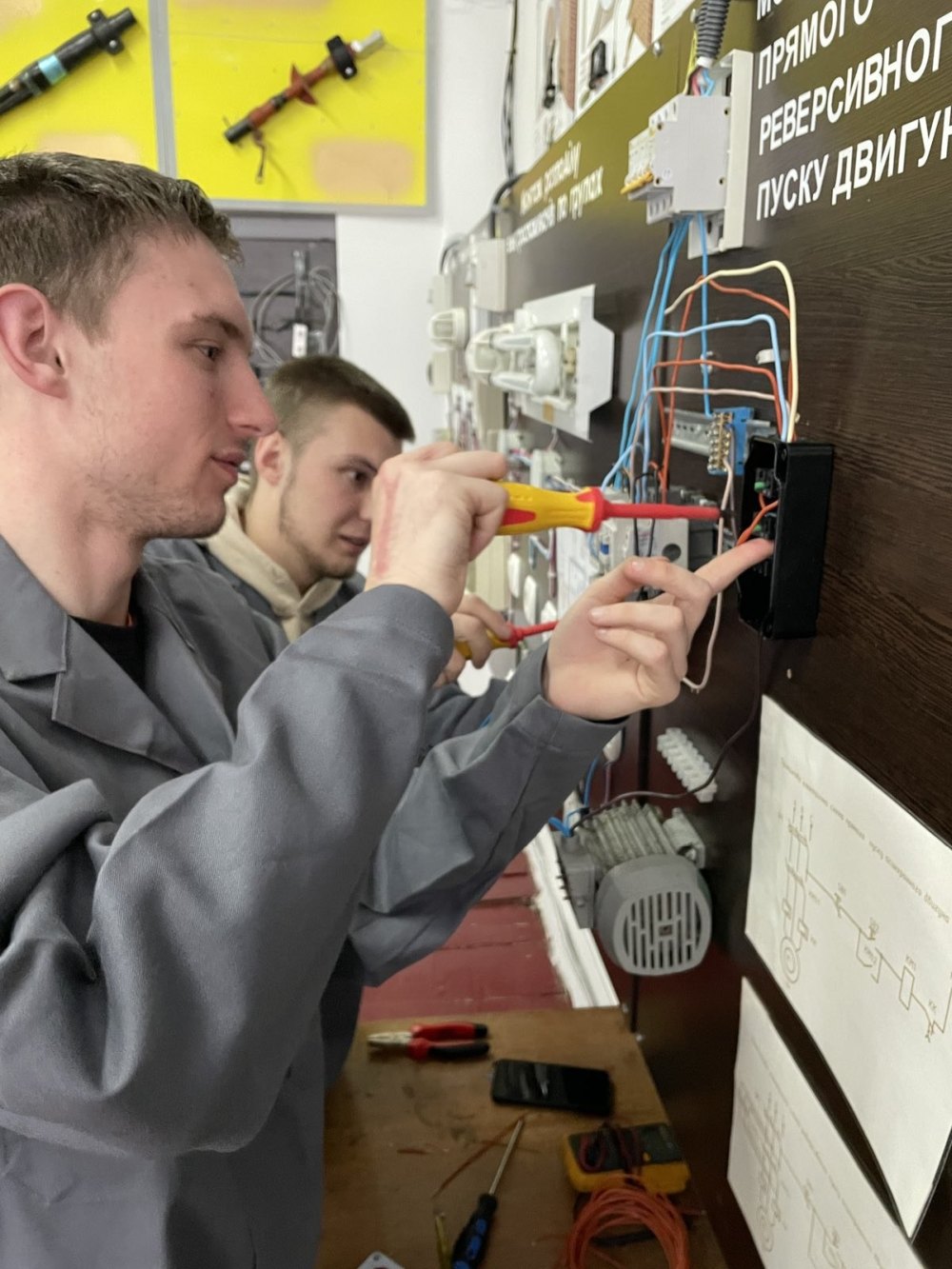 Учасники заходу проходили тестування та виконували низку практичних завдань, серед яких: • підключення трифазного асинхронного електродвигуна,
