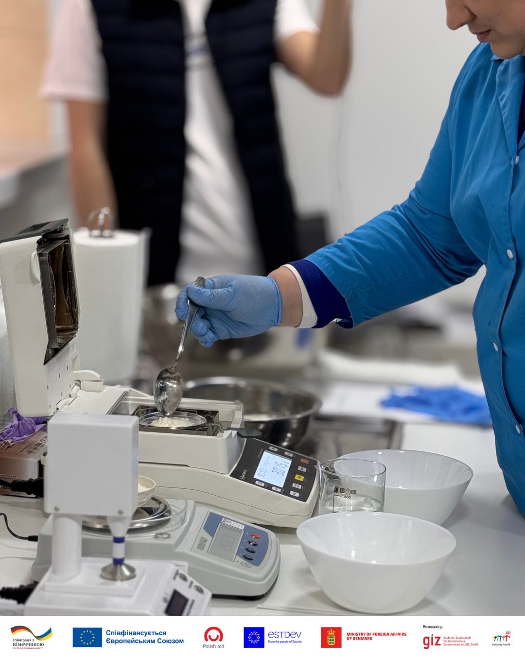 Учасники зустрічі оглянули нове лабораторне обладнання та спостерігали за практичним дослідом із визначення характеристик кондитерських виробів, який провів фахівець Golski Sweet Company.