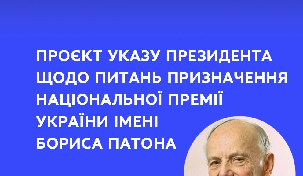 Навесні цього року Президент України Володимир Зеленський підписав Закон «Про внесення змін до статті 11 Закону України «Про державні нагороди України» № 1399-ІХ. На виконання цього Закону розроблено проєкт Указу «Питання Національної премії України імені Бориса Патона та підвищення ефективності підтримки наукової та науково-технічної діяльності молодих вчених» (Пояснювалюна записка).
