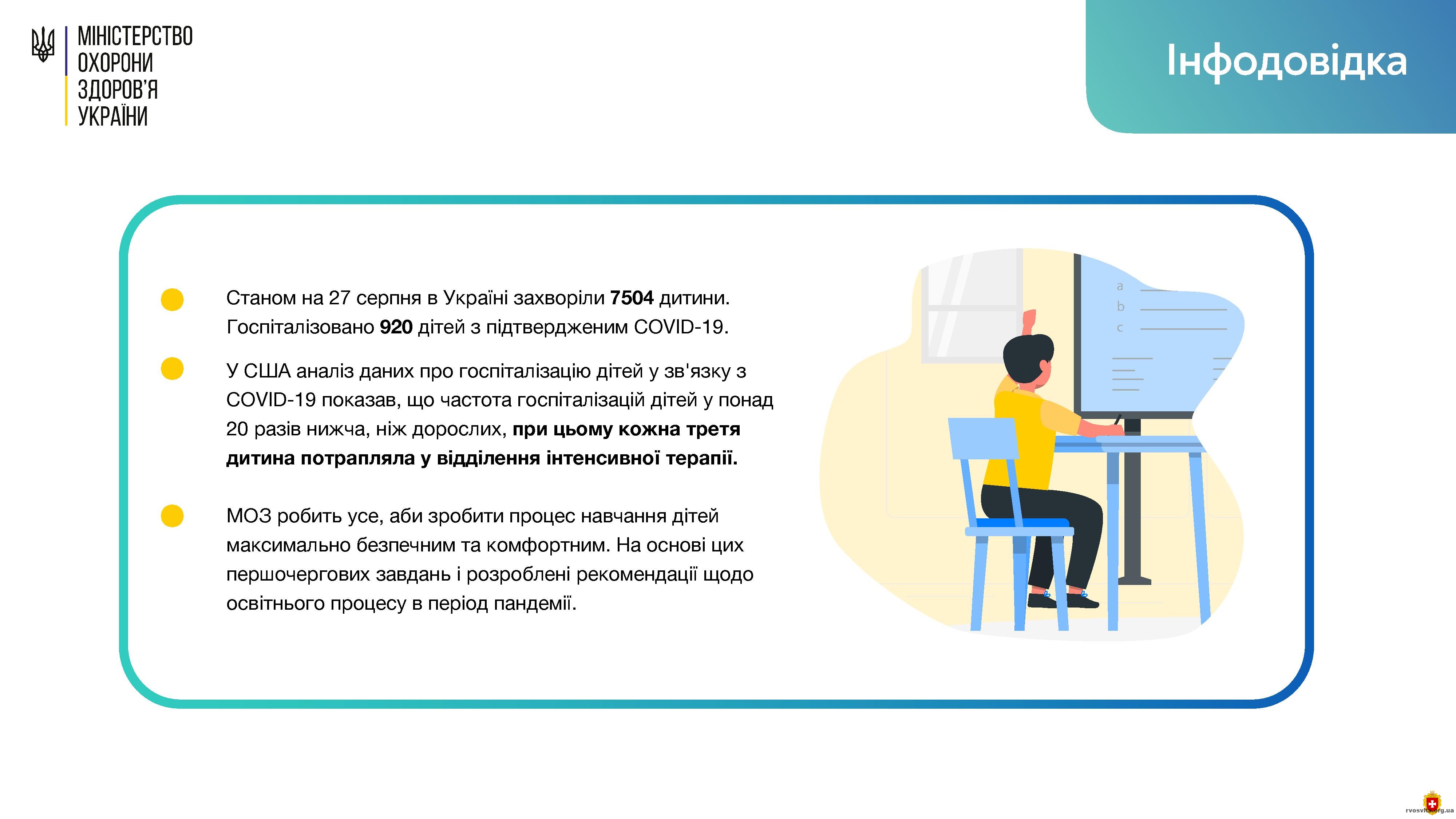 «МОЗ має на меті зробити навчання дітей максимально безпечним та комфортним. Для різних класів та груп рекомендовано встановити різний час початку занять та перерв. Різниця може складати буквально 15 хвилин, але це вже зменшить ризик інфікування», — зазначив Максим Степанов.