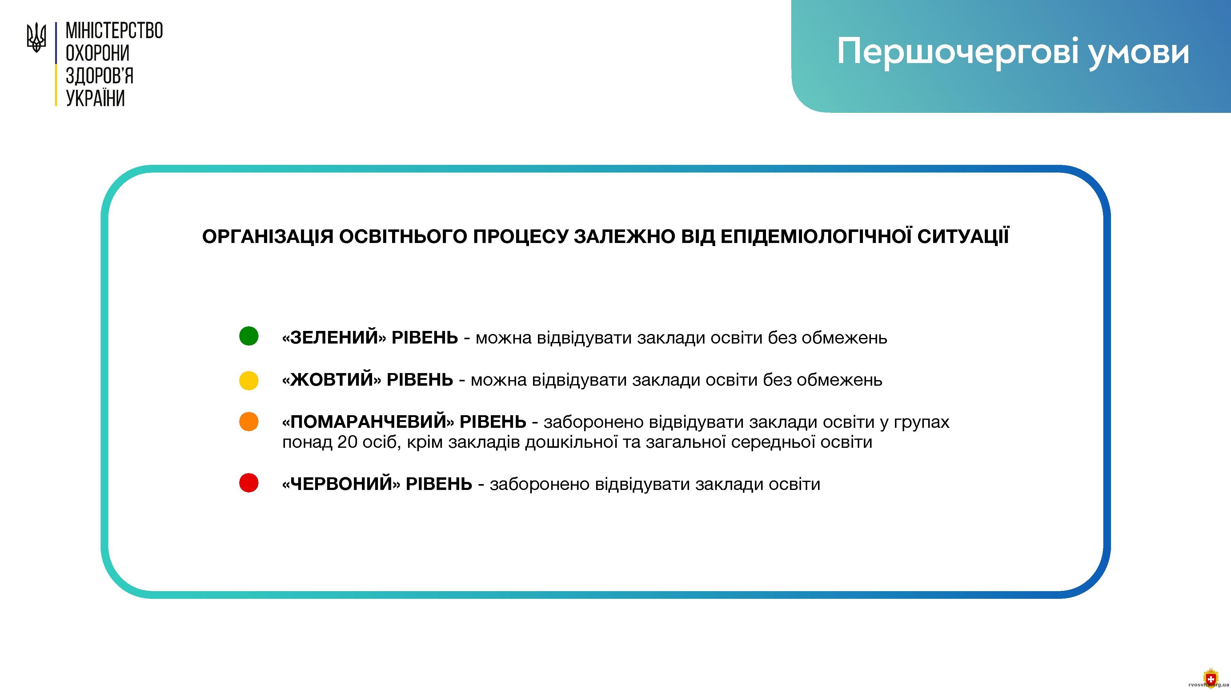 Очільник міністерства наголосив, що 1 вересня навчальний процес розпочнеться в усіх регіонах, окрім адміністративно-територіальних одиниць з «червоним» рівнем епідемічної небезпеки.
