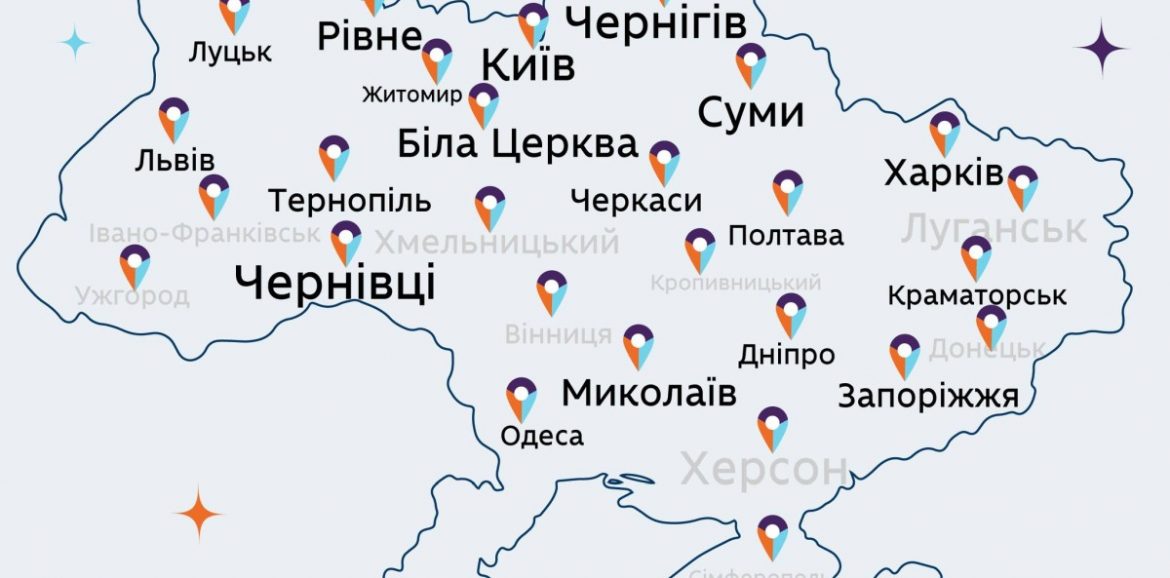 Ось тут 👉 bit.ly/3ZBBJDo знайдете 22 інтерв’ю з призерами відбіркового етапу 2021-2022 років. 🇺🇦 На карті виділили міста, які представляли учасники. З деяких міст, зокрема зі Львова, Краматорська та Кривого Рогу, маємо декілька історій.