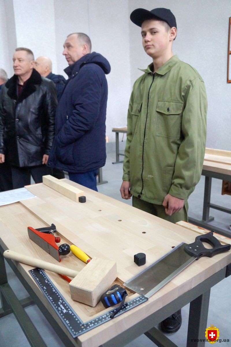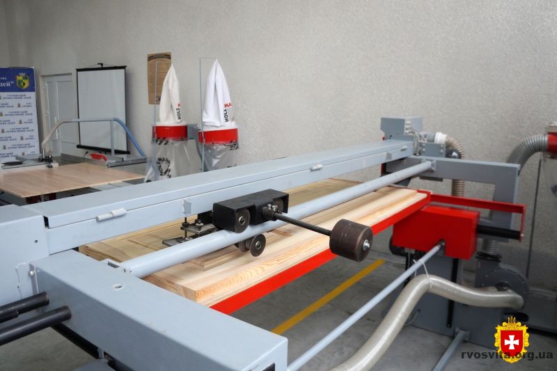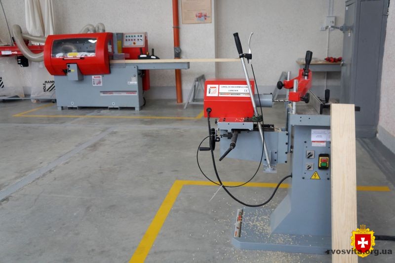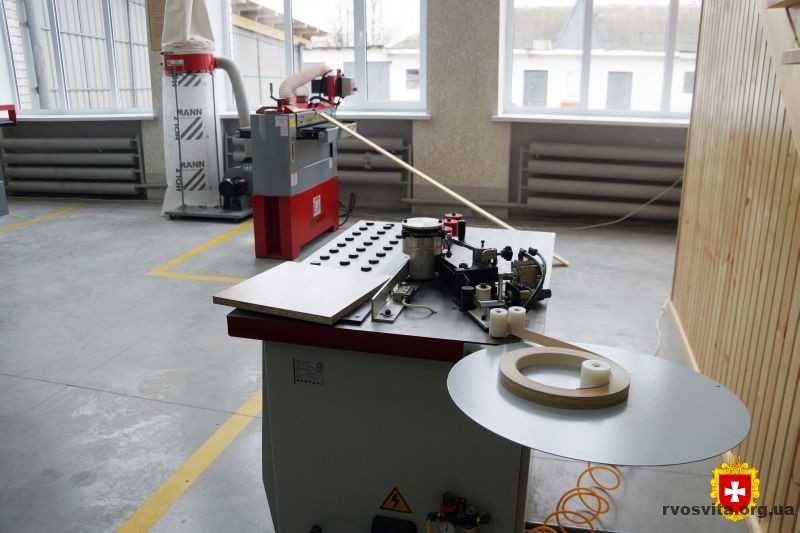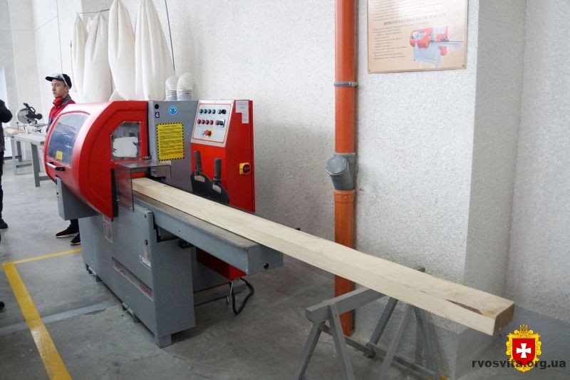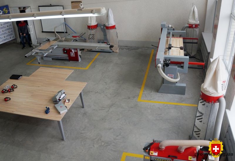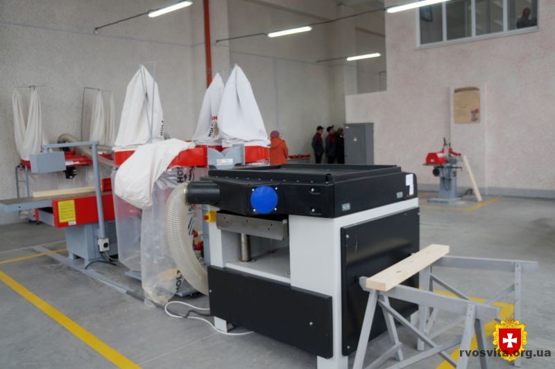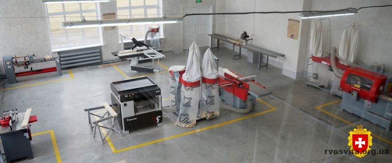 У навчально-практичному центрі облаштували столярний та меблевий цехи, майстерню ручної обробки деревини, клас для проведення інструктажів з охорони праці, стрічкову пилораму та роздягальню.