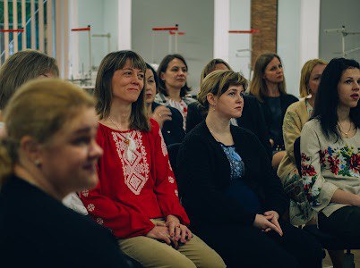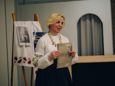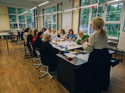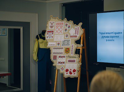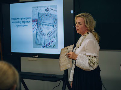 Учасники освітнього хабу отримали домашнє завдання — вишити червону півонію, орнамент із культурної спадщини Луганщини.
