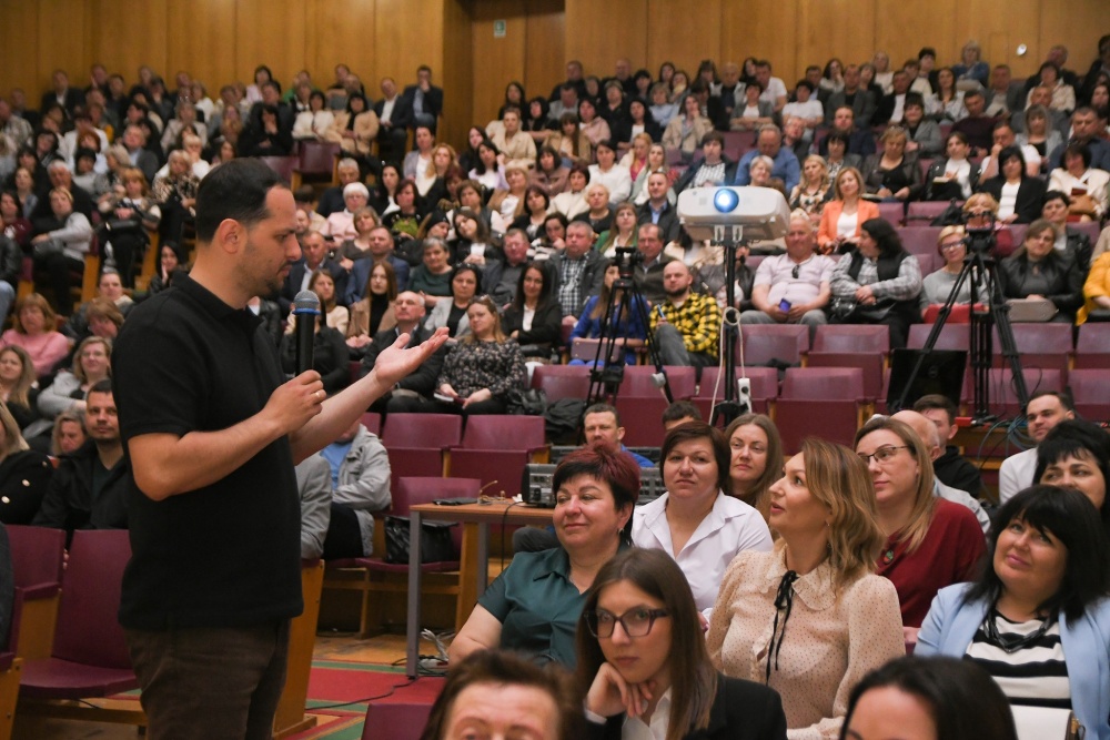 Практичним досвідом підключення до «Мрії» поділився Вадим Друзь, начальник управління соціально-культурної сфери Володимирецької селищної ради. Він представив кейс громади та акцентував увагу на реальних змінах у взаємодії між школою, учнями та батьками.