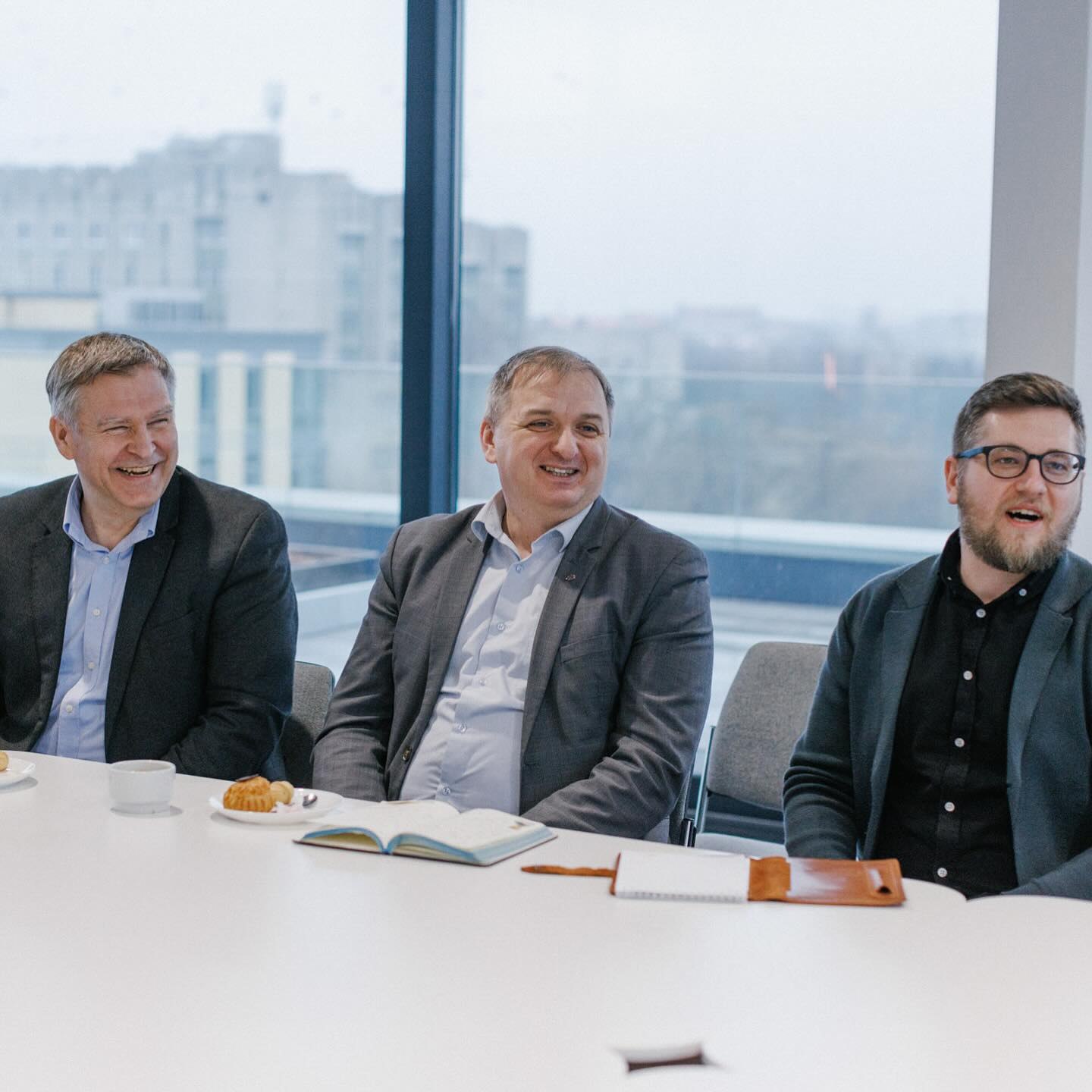 У межах офіційної зустрічі керівники підрозділів Острозької академії на чолі з проректором з науково-педагогічної роботи Дмитром Шевчуком обговорили з колегами з УКУ стратегії розвитку закладів вищої освіти, поділилися успішним досвідом реалізації освітніх та наукових ініціатив, а також окреслили нові перспективи співпраці.