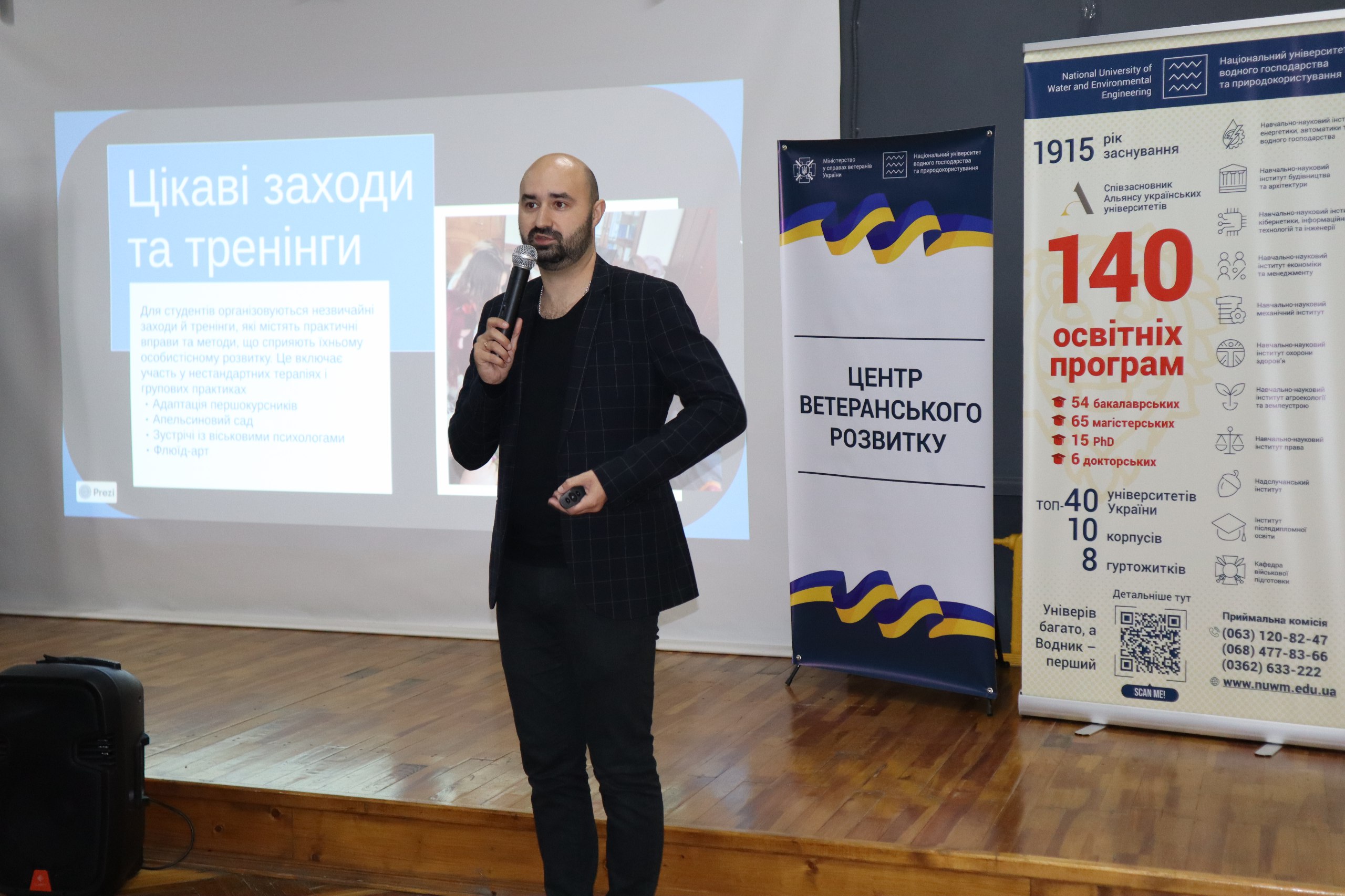 🏛Серед відвіданих локацій був Національний університет водного господарства та природокористування (НУВГП), де гостям презентували сервіси психосоціальної підтримки. Університет готує фахівців у галузі психології, реабілітації та надає допомогу ветеранам у спеціалізованому просторі, що забезпечує супровід ветеранів, надаючи їм доступ до ресурсів і психологічної підтримки. Крім того, проводяться різноманітні заходи для поліпшення психічного здоров’я та розвитку навичок стійкості: це тематичні тренінги, терапевтичні сесії з каністерапії, етнотерапії, ерготерапії.