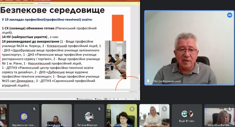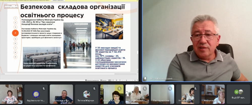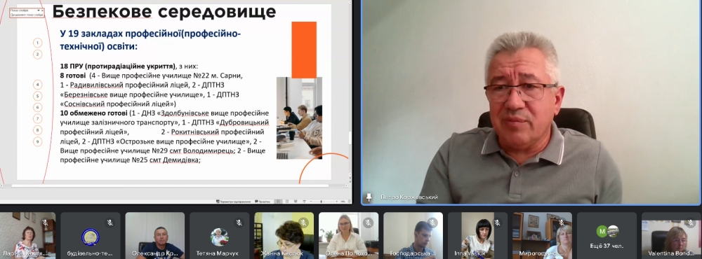 Організація освітнього процесу. Безпека освітнього середовища. Якість освітнього процесу. Основні тези наради, директора департаменту із керівниками закладів професійної (професійно-технічної) та фахової передвищої освіти. Окреслено завдання керівникам закладів професійної освіти щодо забезпечення дотримання нормативно-правових документів в організації освітнього процесу, забезпечення реалізації концептуальної політики «Школа офлайн», виконання планів і програм професійної підготовки, упровадження оновленої програми предмету «Захист України».