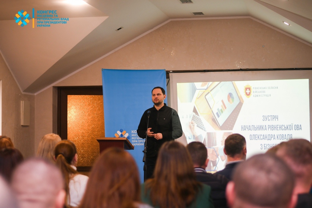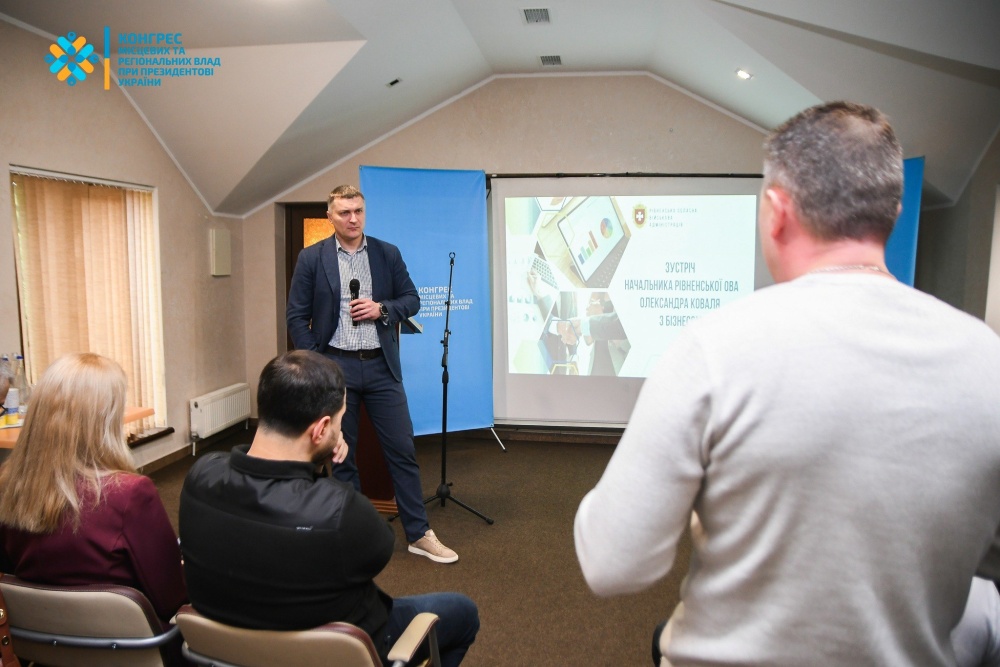 🔹Серед учасників заходу були начальник Рівненської ОВА Олександр Коваль, його заступник Олександр Кохан, директор департаменту освіти і науки Петро Коржевський, а також керівники місцевих служб зайнятості, податкової та митниці. Обговорювали питання, пов’язані з підтримкою бізнесу в умовах воєнного стану, а також реалізацією державних і регіональних програм розвитку підприємництва.