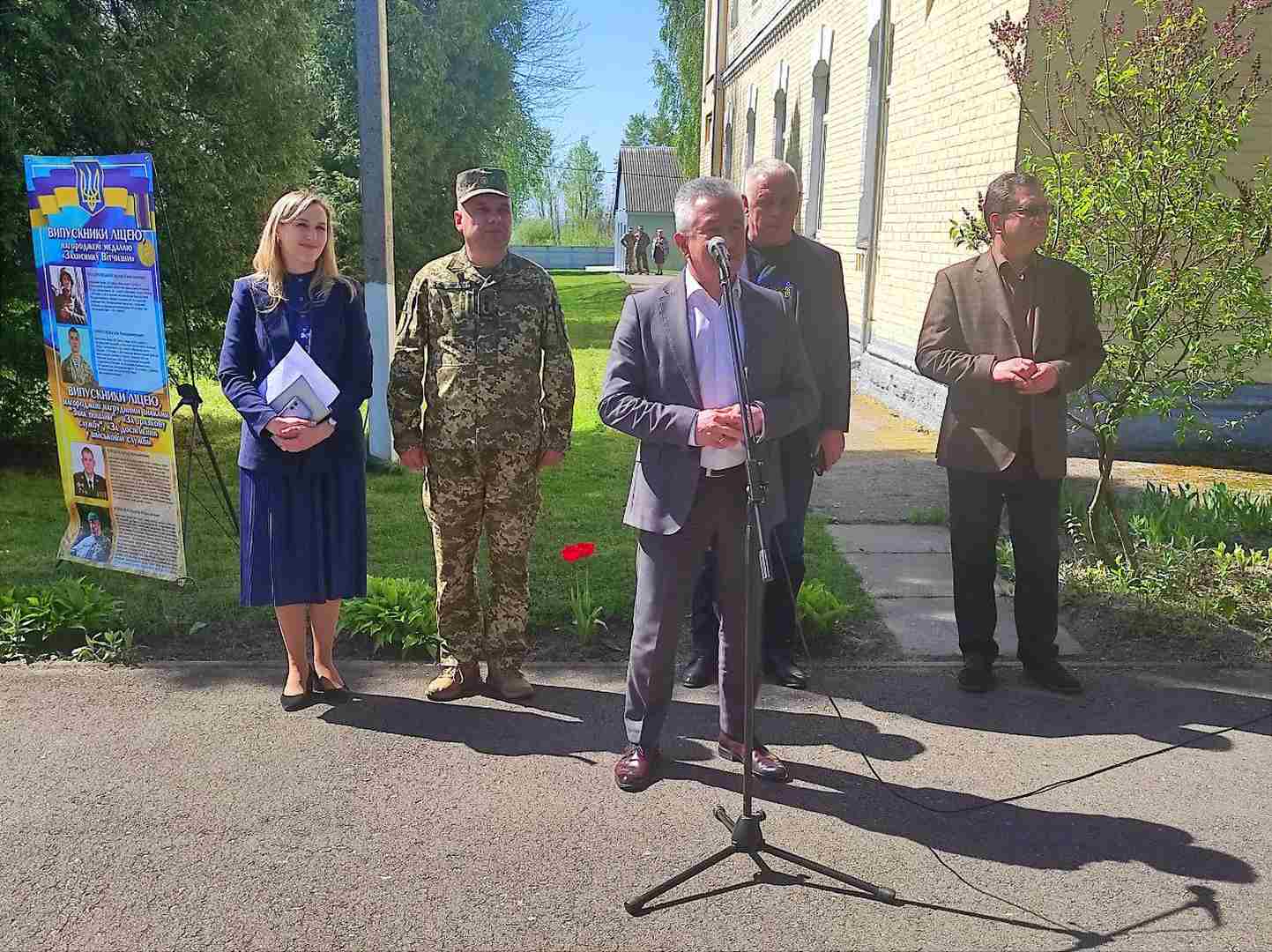 З вітальним словом до школярів звернувся директор департаменту освіти і науки Рівненської ОДА Петро Коржевський: «Ліцей формує військову еліту України. В 2027 році ми перейдемо в старшу профільну школу, але про напрям, що може вас розвивати треба думати вже сьогодні. Я впевнений, ви переконаєтеся, що тут унікальні керівник, викладачі, техніка та засоби з якими ви можете навчатися.Тому подумайте, як ви хочете будувати свою освітню траєкторію і зрозумійте, що сьогодні престижно вчитися в Україні».