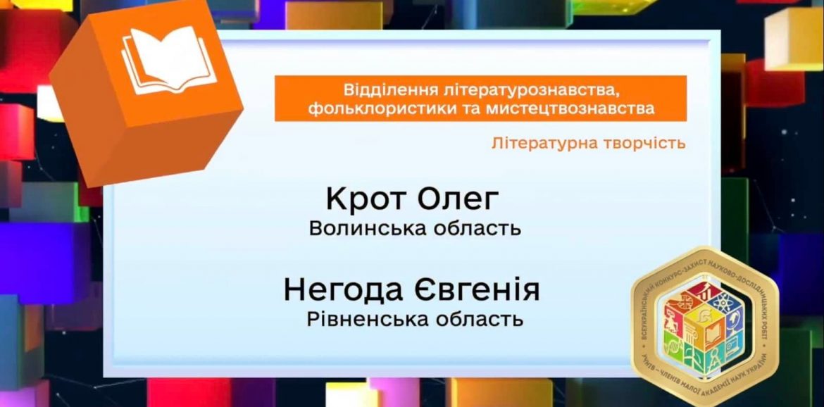 - у секції літературної творчості – Євгенія Негода, учениця 11 класу Рівненської української гімназії (кер. Олександр Мазур);