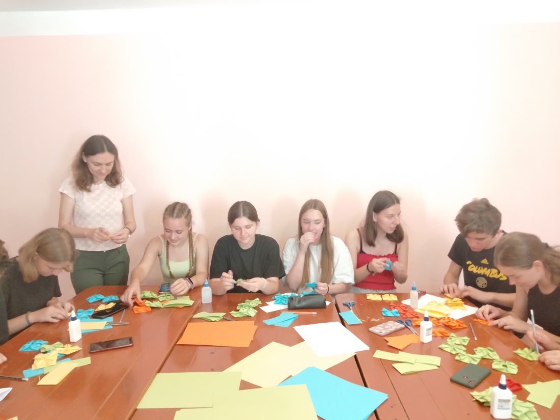 Юні науковці зі шкіл “Мистецька спадщина Волині в сучасному контексті” та “Науки про Землю” мали вже чудову нагоду повчитися традиційному мистецтву витинанки від народної майстрині Оксани ЛІНЧУК. Було цікаво та емоційно; виготовлення витинанок супроводжувалося гуртовим співом і декламуванням улюблених поезій; завершився майстер-клас своєрідною виставкою власних виробів.