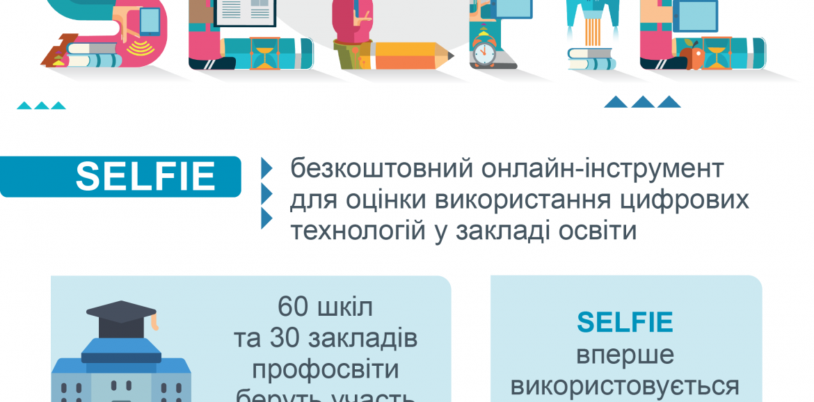 SELFIE – це онлайн-інструмент (заповнення онлайн анкет), спрямований на допомогу закладам освіти в самооцінці ефективності впровадження цифрових технологій в освітньому процесі.
