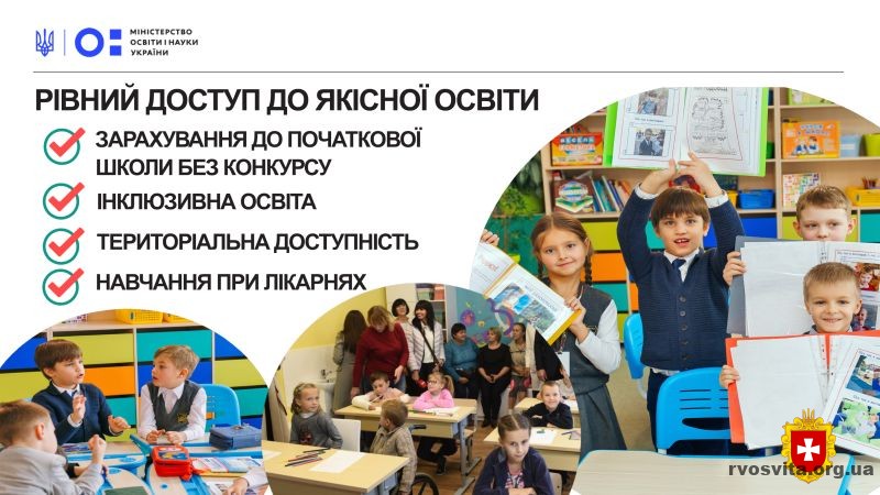 Гарантії рівного доступу до освіти. Так, Закон гарантує зарахування дітей до початкової школи без жодних конкурсів, при цьому заклад має бути територіально доступним для дітей незалежно від їхнього соціального статусу чи місця народження. Інклюзивність – тобто можливість дітям з особливими освітніми потребами навчатися в звичайних школах за власною освітньою траєкторією – також передбачена документом і гарантується учням.