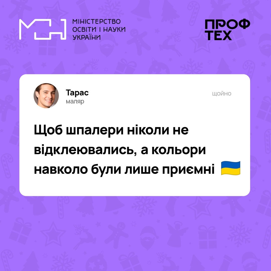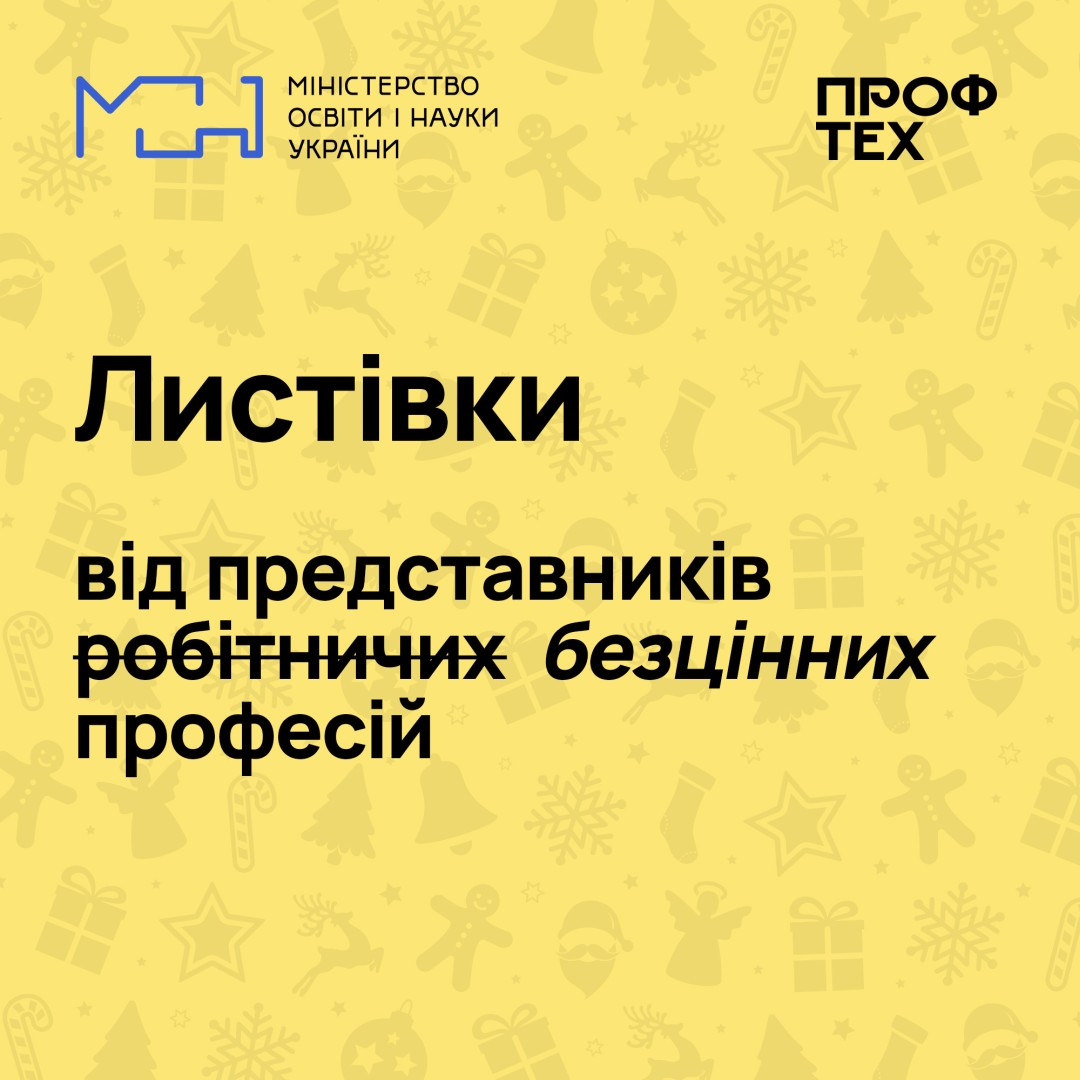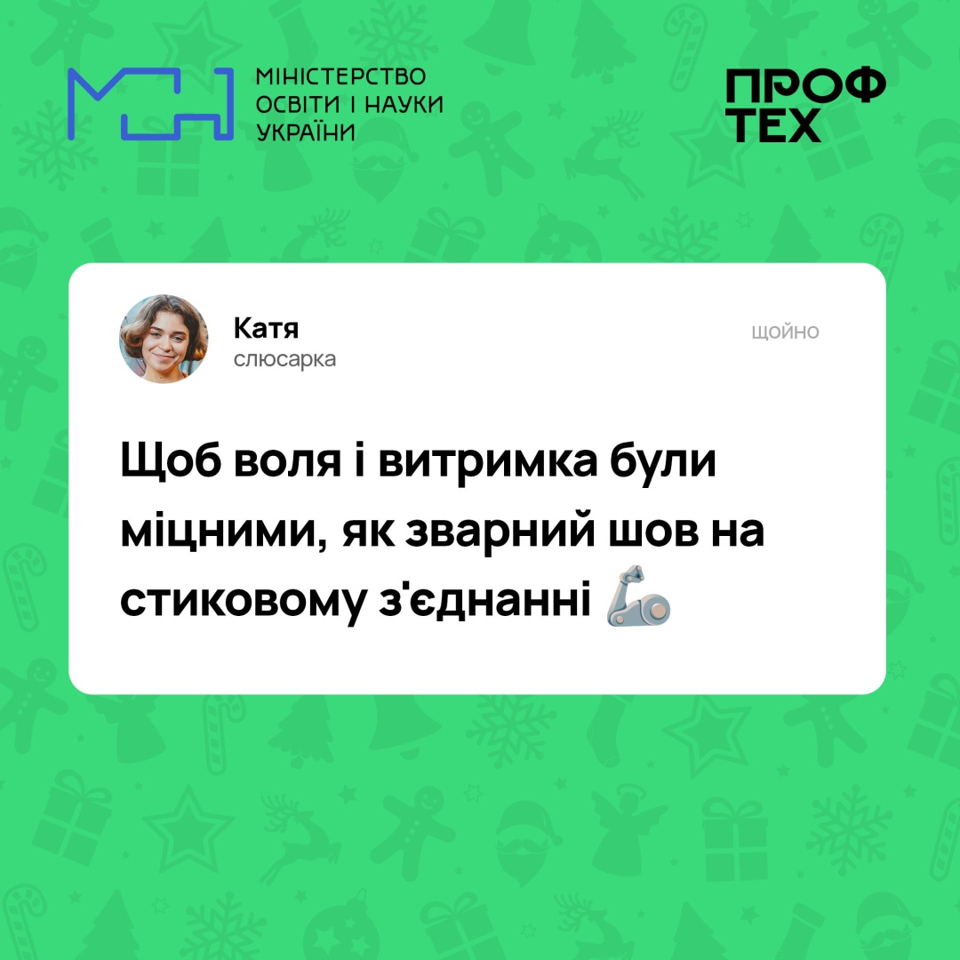 Робітничі професії безцінні!опубліковано 02.01.202302.01.2023 Професійна освіта Переглядів: 26 Позаду нелегкий рік, однак ми прожили його гідно та сміливо. Попереду – тільки перемога! Зі світлом, теплом, рідними поряд і без поганих сусідів. Привітати зі святами також спішать наші фахівці робітничих професій Ловіть листівки від них Поширити: Надрукувати: