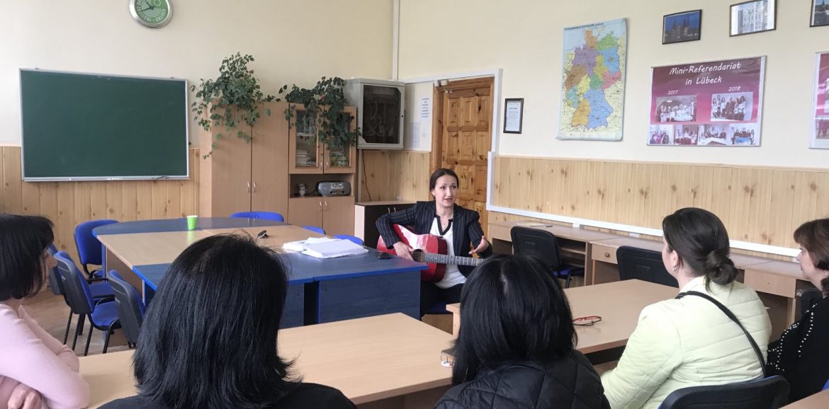 На засідання мовного клубу «Розмовляємо українською», який започаткований Рівненським державним гуманітарним університетом спільно з департаментом освіти і науки облдержадміністрації, завітала письменниця, перекладачка, авторка-виконавиця Валентина Люліч.