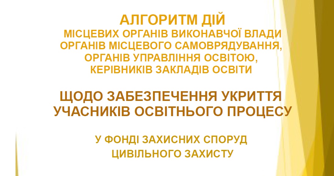 ЩОДО ЗАБЕЗПЕЧЕННЯ УКРИТТЯ УЧАСНИКІВ ОСВІТНЬОГО ПРОЦЕСУопубліковано 20.07.202220.07.2022 Переглядів: 661 Поширити: Надрукувати: