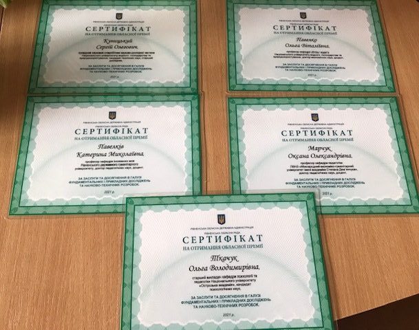 Нагороджені відзнакою «Відмінник освіти Рівненщини» та обласними преміями :