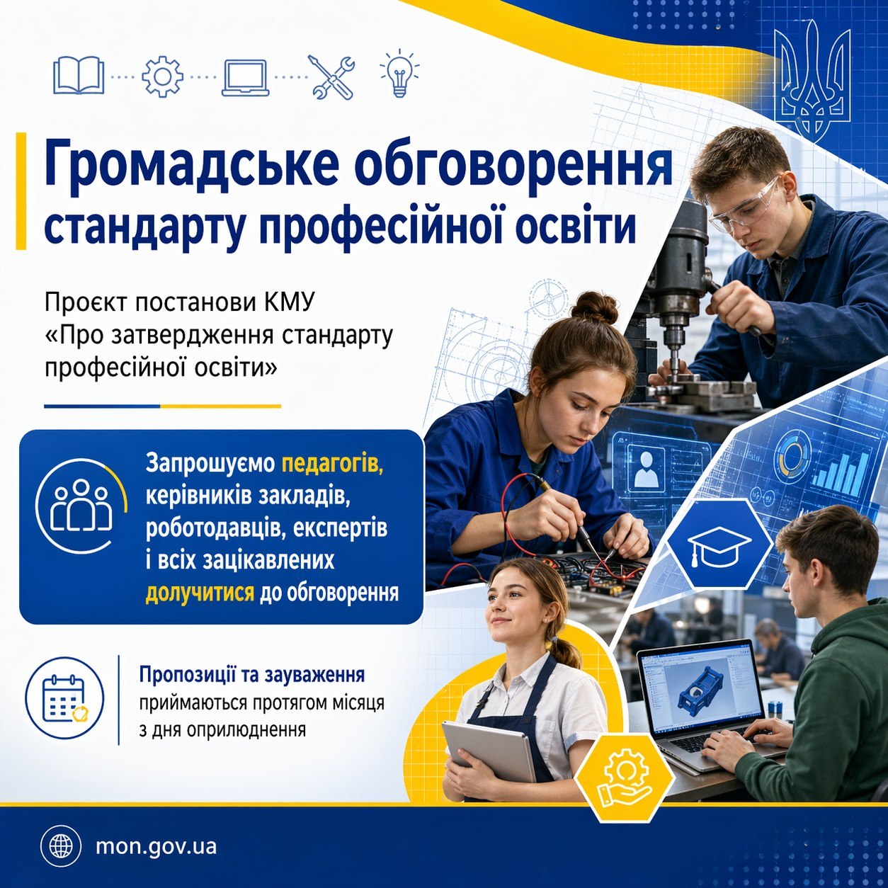 Триває громадське обговорення проєкту постанови Кабінету Міністрів України «Про затвердження стандарту професійної освіти»