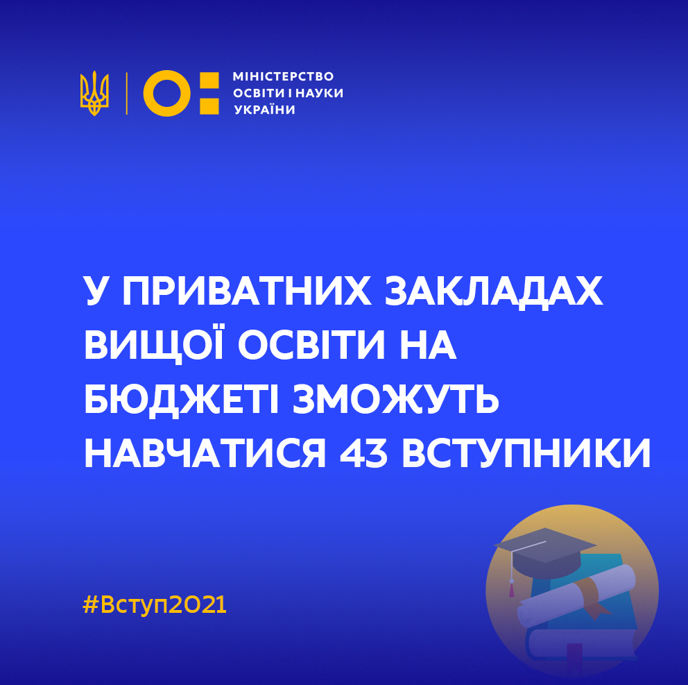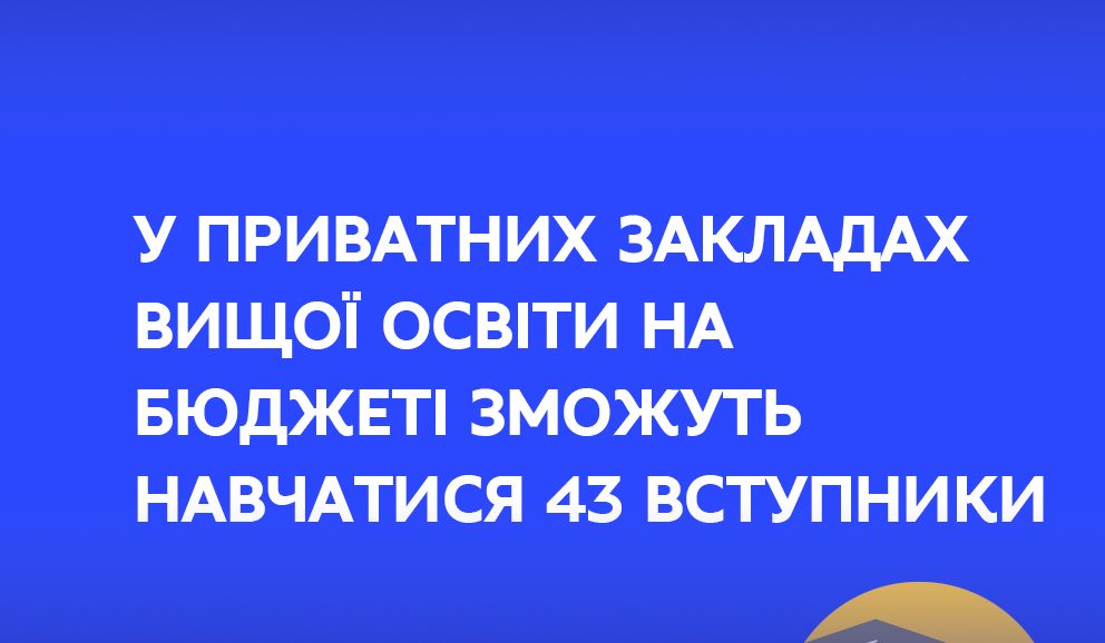 У приватних закладах вищої освіти на бюджеті зможуть навчатися 43 вступники