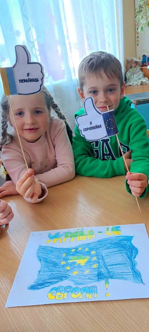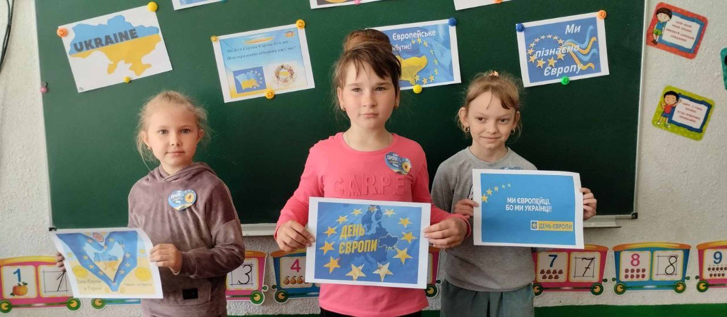 Маленькі вихованці Смизького дитячого садка приєдналися до цього дня та переглянули презентацію «День Європи – день миру та єдності» і виготовили аплікацію «Я – українець. Я – європеєць». Діти старшої групи Новоберестецького дитячого садка «Веселка» взяли участь у флешмобі «Україна – серце Європи».