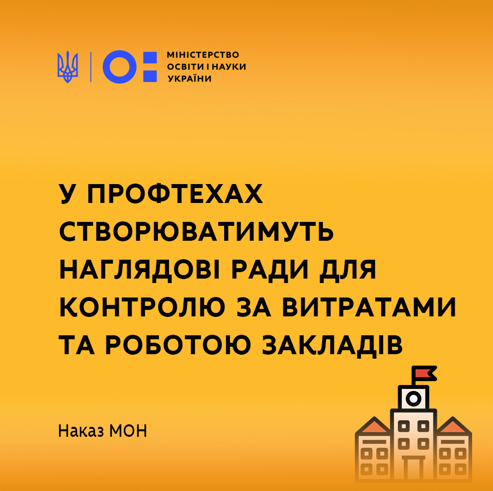 У наказі рекомендовано включати до складу наглядових рад представників засновника закладу, громадських організацій, органів місцевої влади території, на якій розташований профтех, роботодавців. Важливо, що до складу такої ради не може входити директор закладу або його заступники, викладачі або учні профтеху.