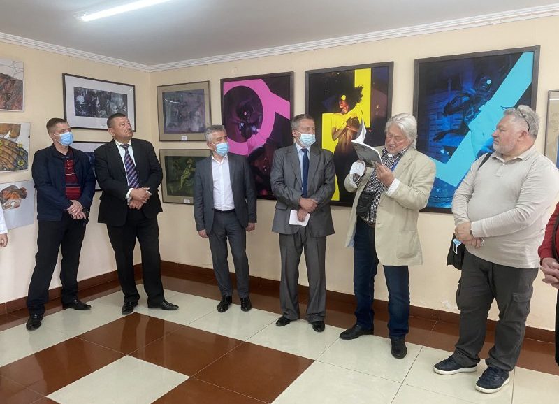 Відкриваючи виставку, ректор підкреслив креативну взаємодію юридичного та мистецького полів, що передбачає захист інтелектуальної власності, надбань культури та мистецтва. Промовець акцентував увагу на непересічній ролі особистості творця на тлі суворих вимог сьогодення і представив присутнім винуватця мистецької імпрези ‒ художника-графіка, лауреата Національної премії України імені Тараса Шевченка (2007), Президента Національної академії мистецтв України, академіка Андрія Чебикіна, твори якого зберігаються в Національному художньому музеї України м. Києва, в Державній Третьяковській галереї, інших музеях і приватних колекціях України та світу.