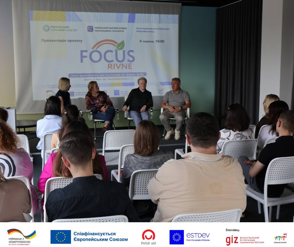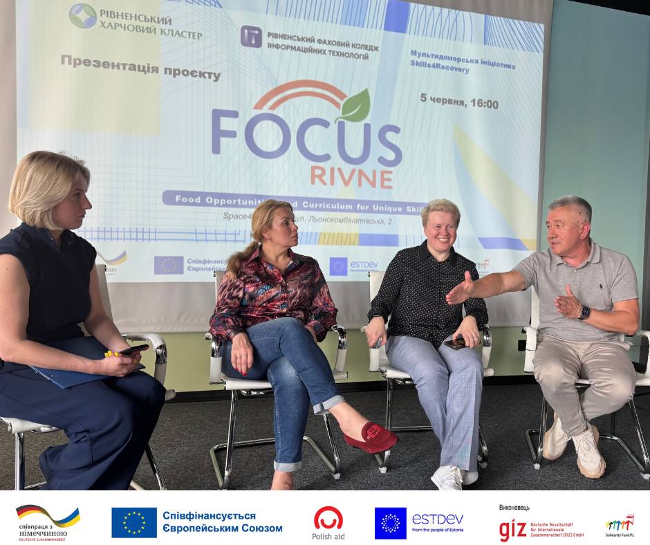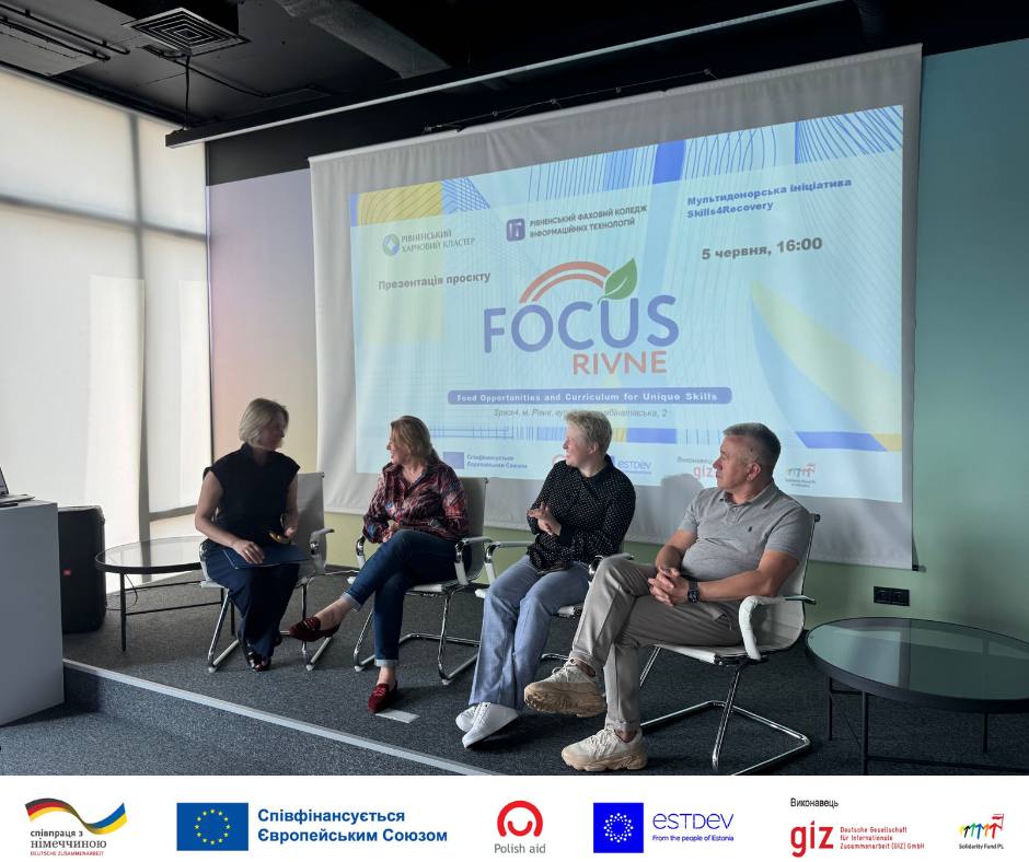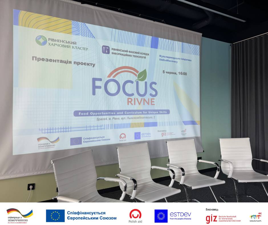 Рівненський фаховий коледж інформаційних технологій у партнерстві з Рівненським харчовим кластером представили громадськості, бізнесу, представникам влади та освітянам програму Skills4Recovery — міжнародну ініціативу, спрямовану на підтримку навчання та перепідготовки фахівців для галузей, важливих у процесі відновлення економіки.