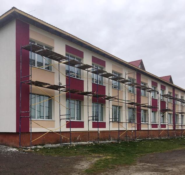 Роботи тут розпочалися ще з минулого року: демонтували стару покрівлю, замінили дерев’яний каркас, покрили гідробар’єром та металочерепицею. Цьогоріч приміщення школи осучаснюють у рамках президентської програми «Велике будівництво». Зараз будівельники утеплюють, штукатурять та розфарбовують у яскраві кольори фасад. Згодом на подвір’ї школи викладуть бруківку.
