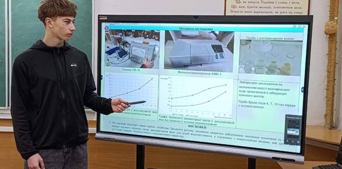 🔹Богдан Швед, учень 9 класу, з дослідницькою роботою «Вторинне забруднення питної води» (науковий керівник — к.т.н. Наталія Мінаєва).