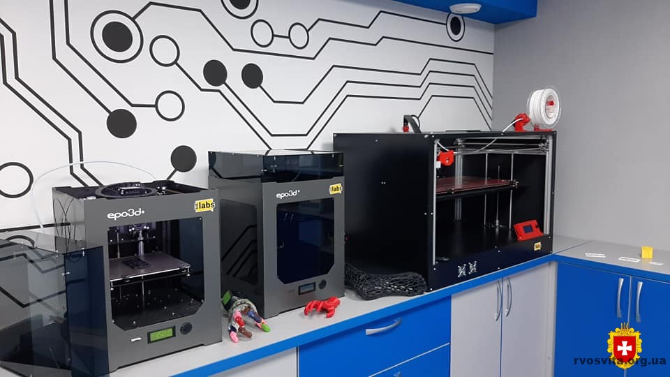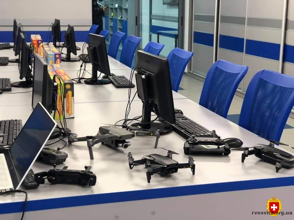 Мультимедійна панель, 3D принтери, лазерні верстати з програмно-числовим управлінням, окуляри віртуальної реальності, дрони, набори для паяння, електромонтажних робіт, роботизовані конструктори.