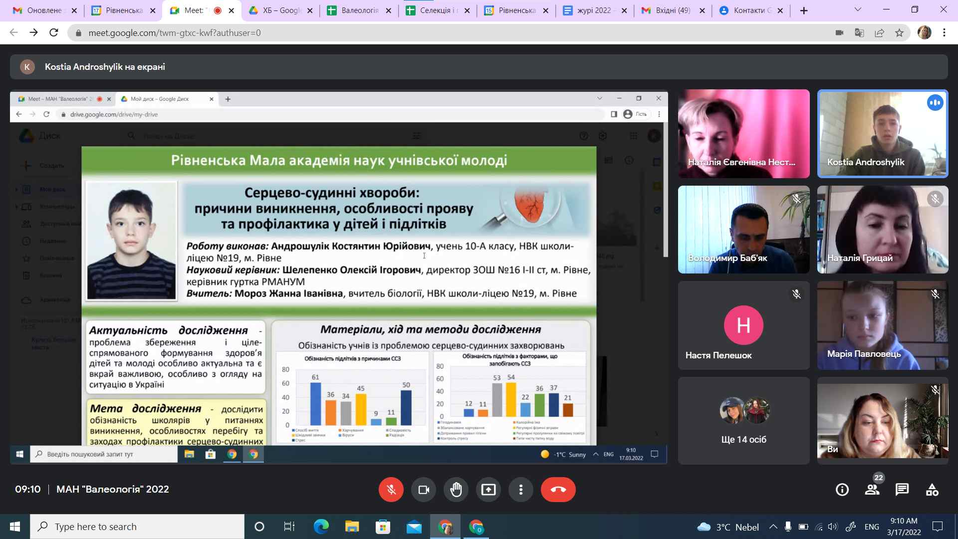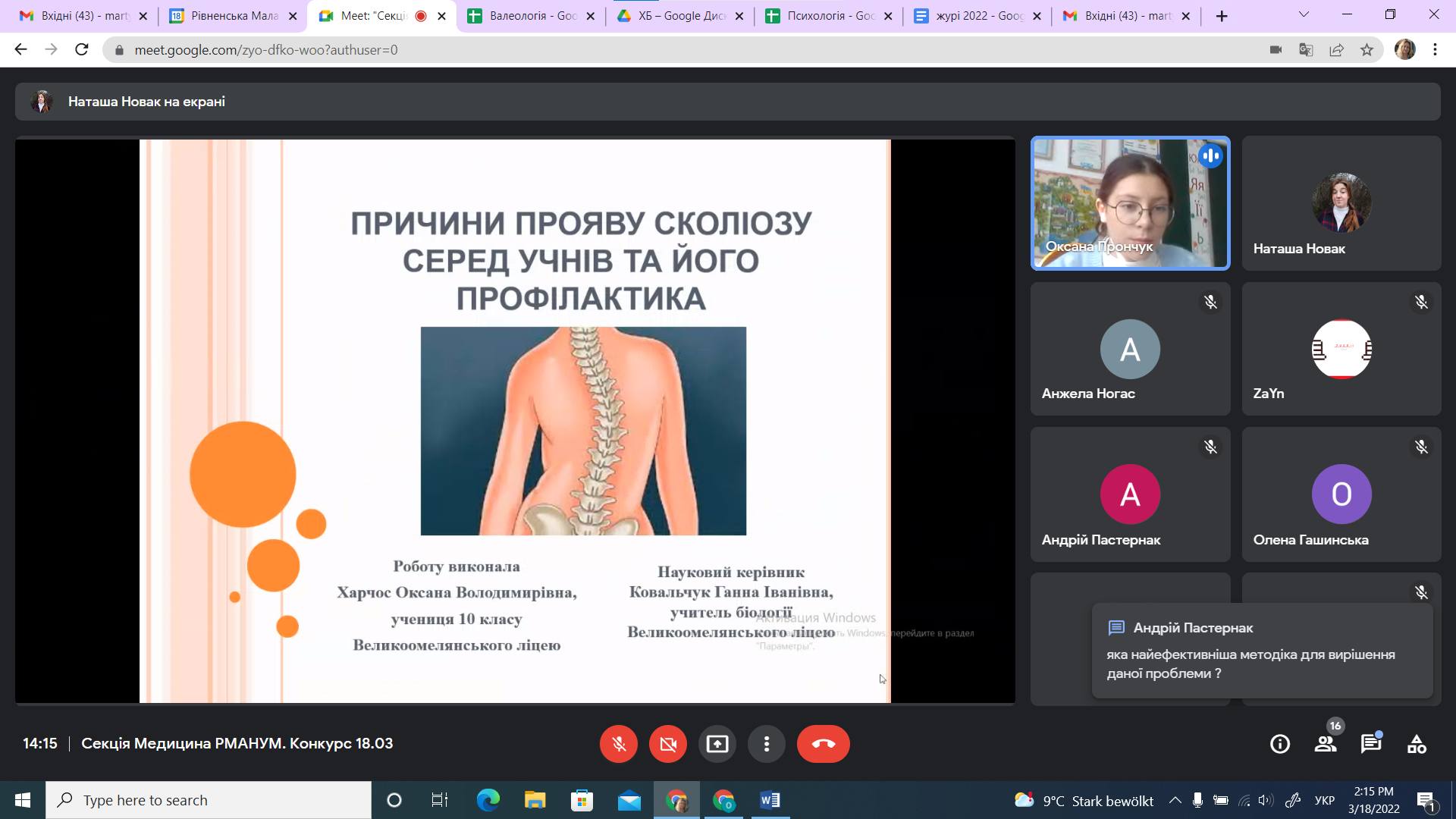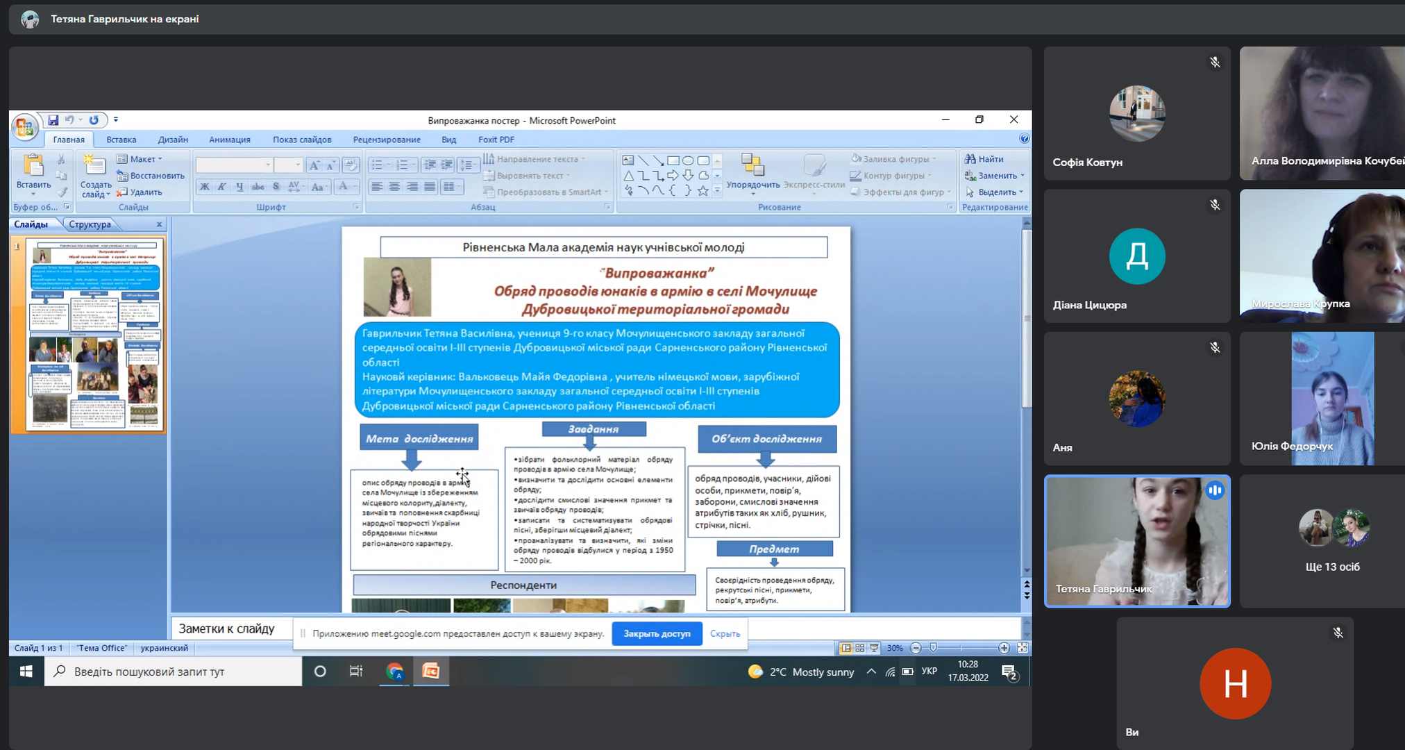 Захист постерів та наукові конференції у секціях «Українська література», «Біологія людини» та «Хімія» відбуватимуться із 21 по 25 березня.