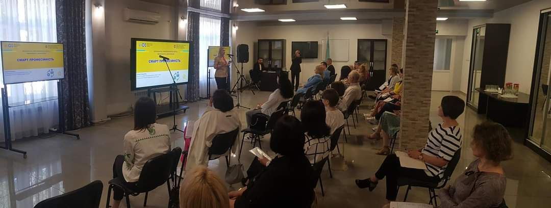 Присутні освітяни дізналися, як розвивати людський капітал у сфері професійної освіти і навчання, вибудовувати комунікаційну стратегію та розставляти акценти у інформаційному полі. Валентина Бондарчук розповіла про основні вектори професійного розвитку педагогічних працівників закладів професійної (професійно-технічної) освіти в умовах реалізації освітніх та професійних стандартів.