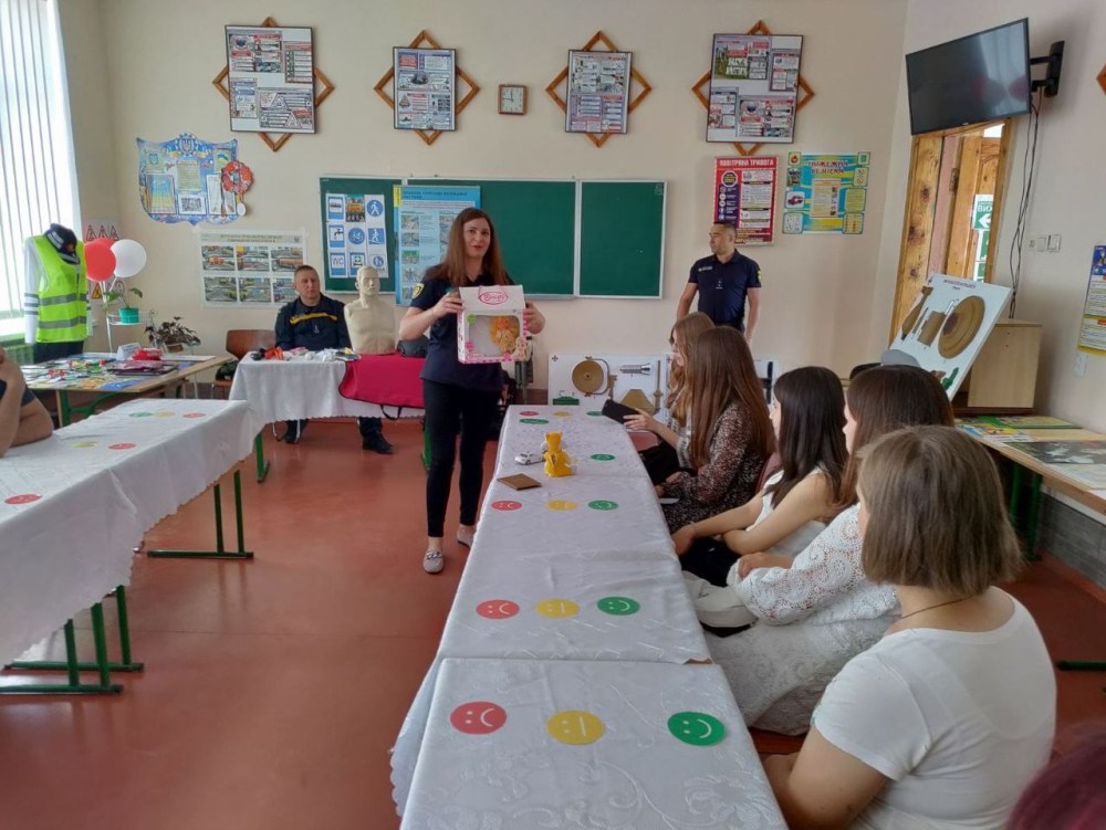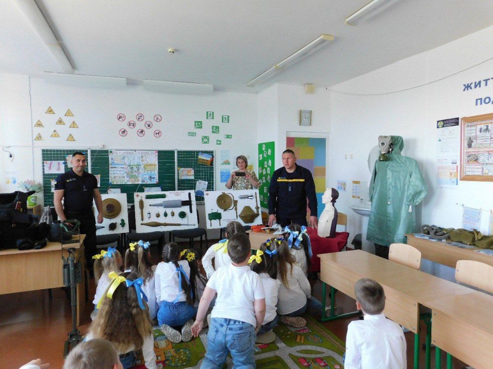 Гості, що завітали на відкриття стали свідками того, як вчителі розповідали малечі про небезпеки, пов’язані з військовими діями, зокрема про мінну небезпеку. Окремо проговорили питання дій у разі отримання сигналів повітряної тривоги і згадали, де наявні найближчі укриття. Другою важливою складовою уроку було спілкування на теми безпеки в побуті. Діти самі назвали найпоширеніші причини пожеж, пригадували правила пожежної безпеки.