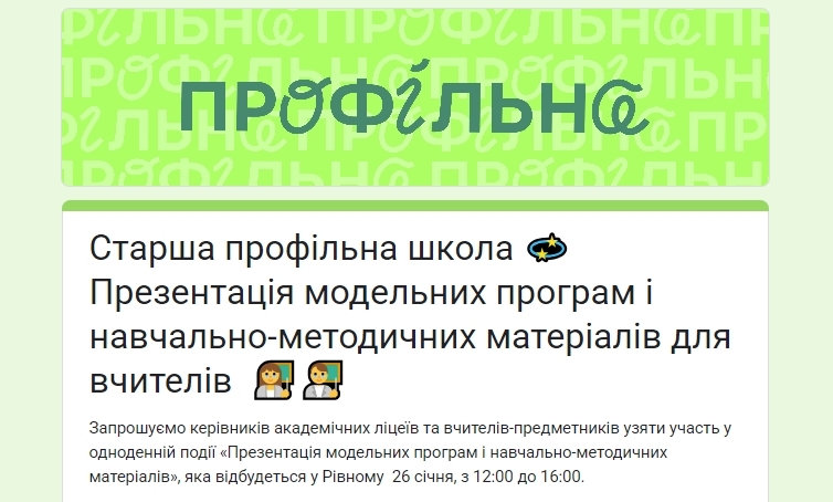 🔹Керівників і вчителів закладів освіти Рівненської області запрошуємо до участі. Для цього необхідно до 23 січня заповнити реєстраційну форму за посиланням: https://forms.gle/PStw7212fnHtCxmk9